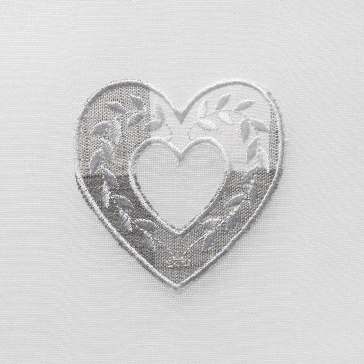 Paire de vitrage à motif vichy de couleur blanc, gris et coeur.