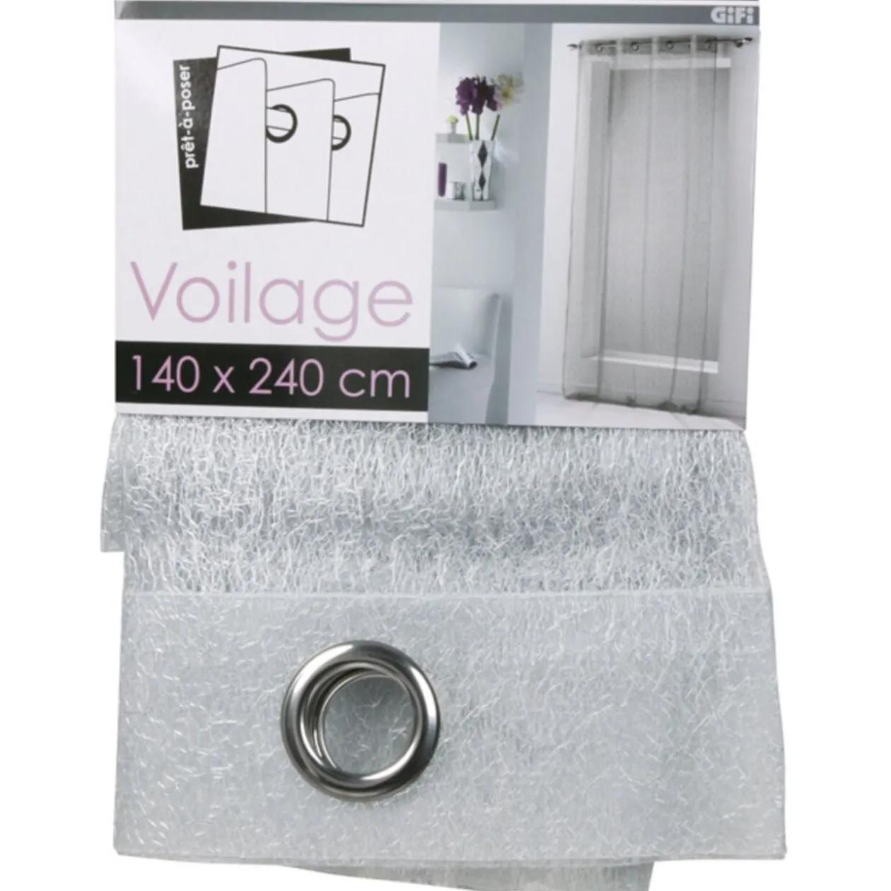 Voilage à oeillets argenté, fine résille, dim. 140×240 cm, polyester.