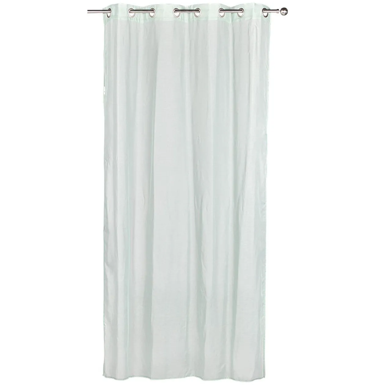 Apportez à votre intérieur un peu de couleur tout en douceur avec ce voilage à oeillets aspect toile à beurre uni de couleur verte.
