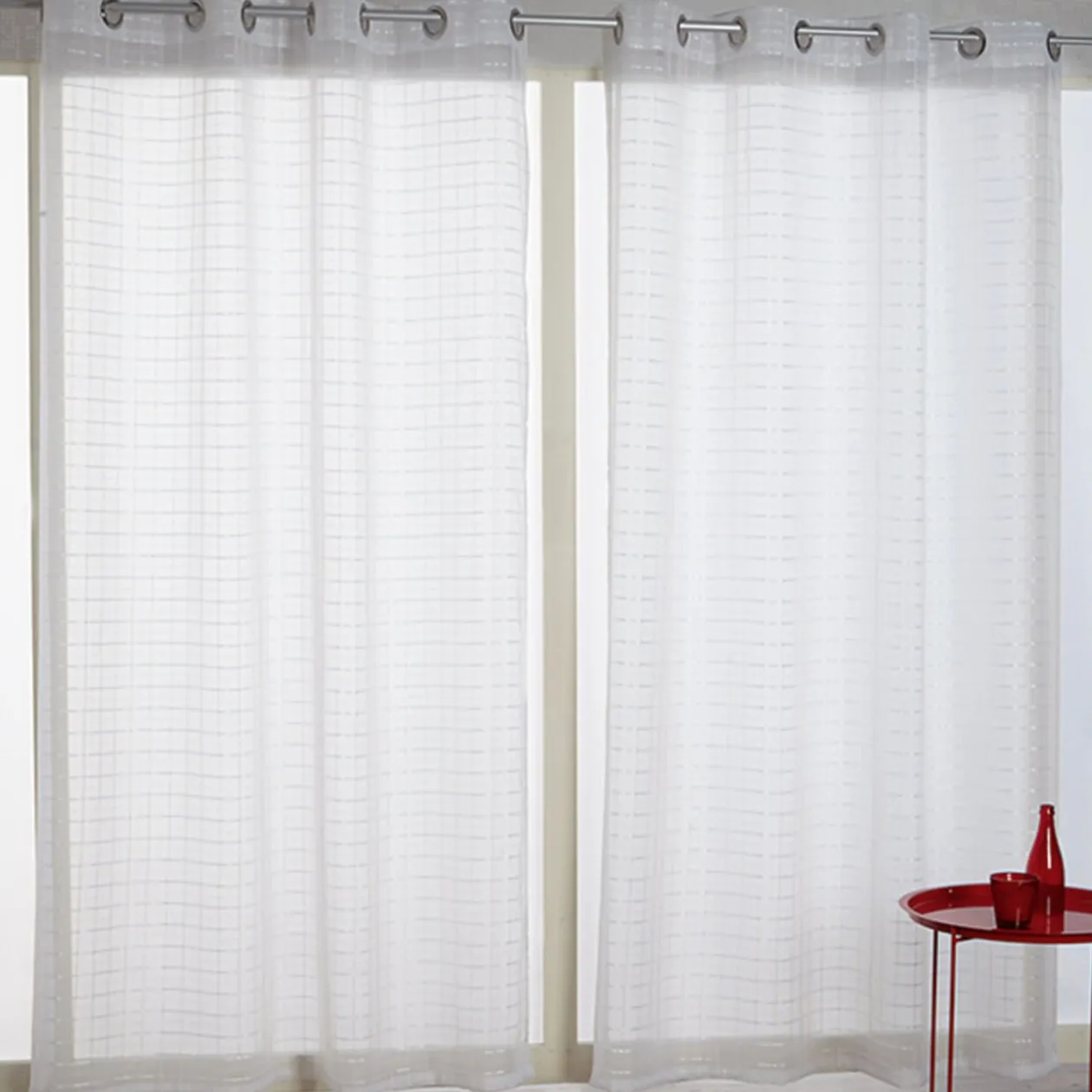 Voilage à oeillets beige design quadrillage