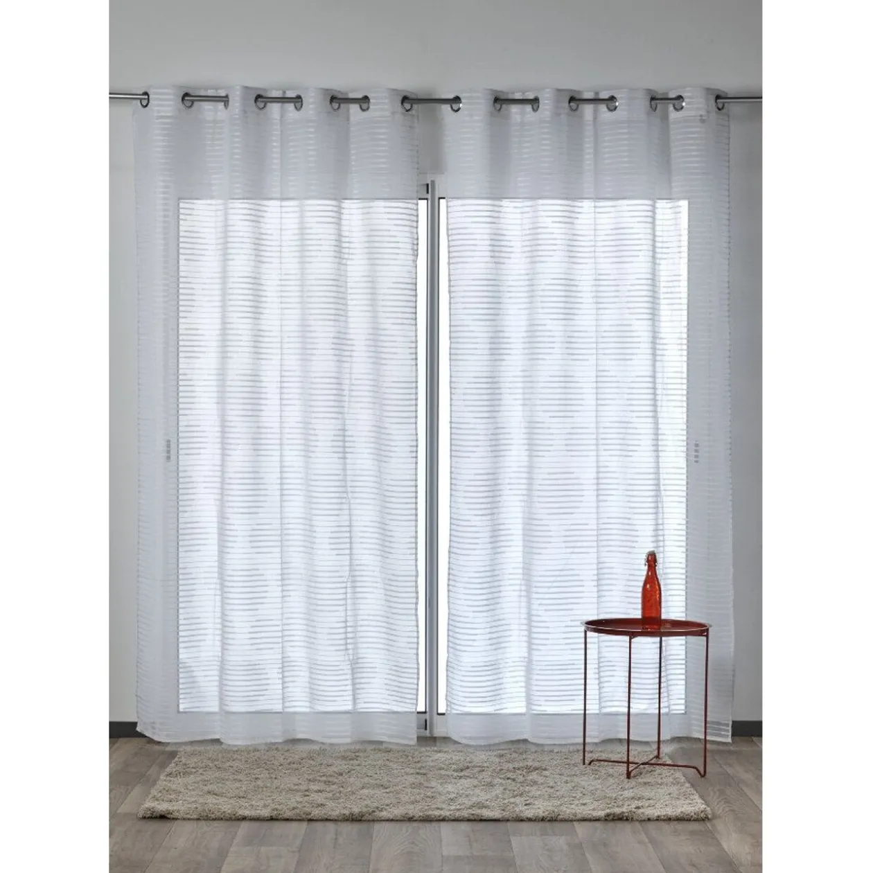 Rideau voilage à oeillets blanc à rayures, dim. 140×240 cm, 100 % polyester.