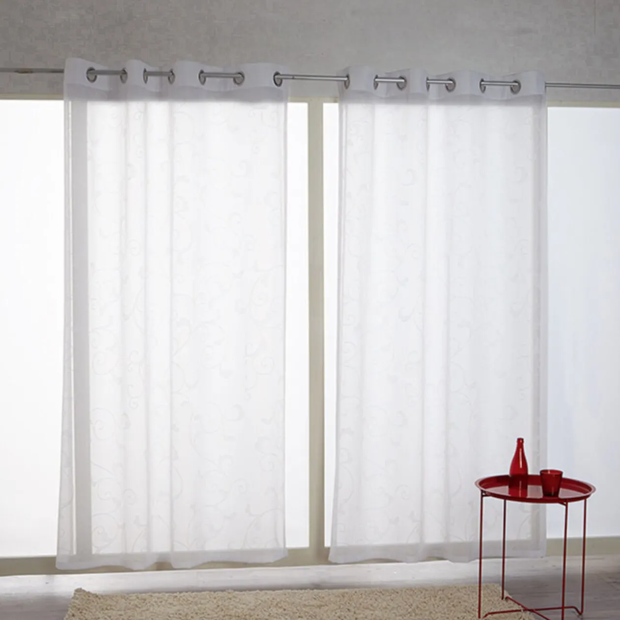 Voilage à oeillets blanc design fleurs, dim. 140×240 cm, polyester.