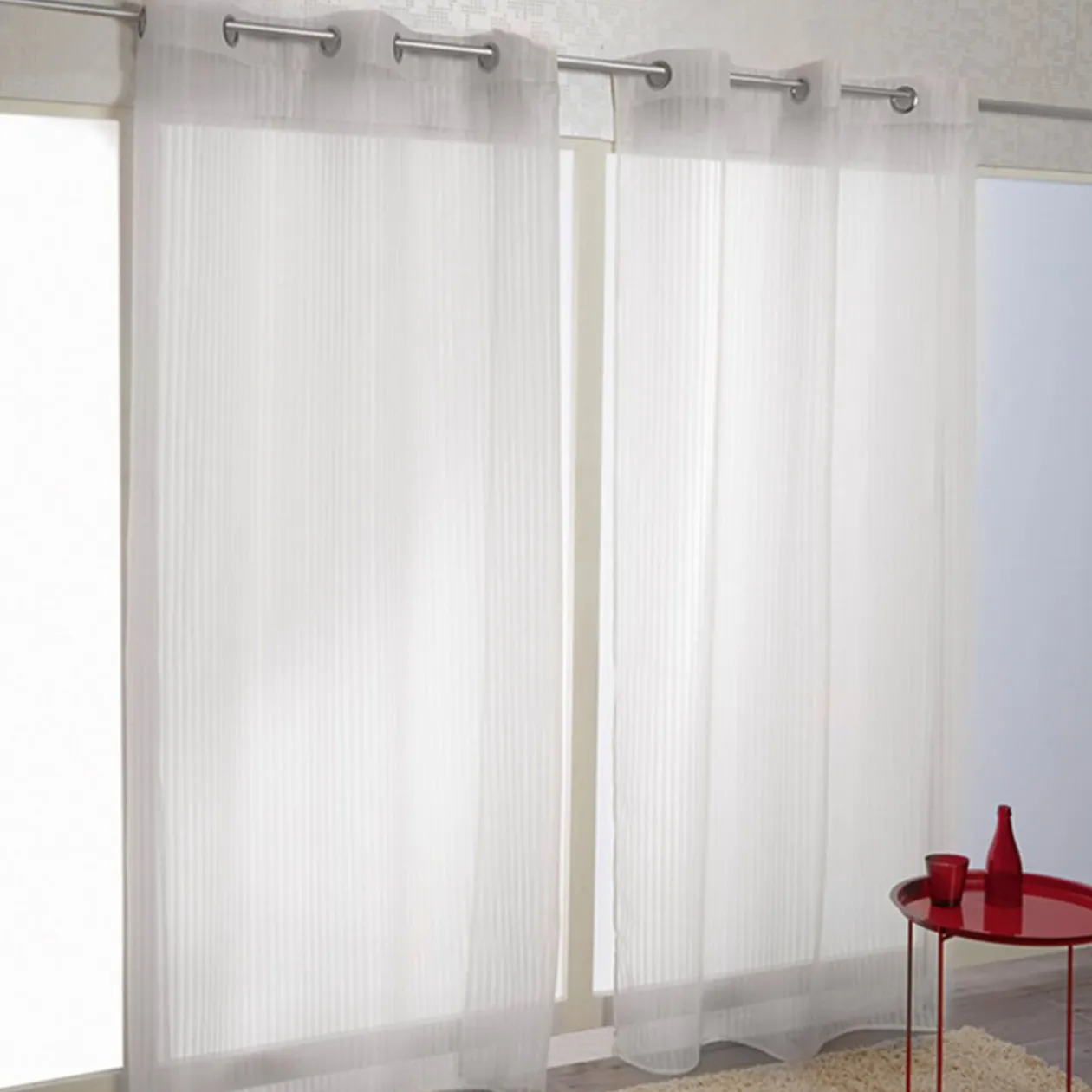 Voilage à oeillets blanc design rayures verticales, dim. 140×240 cm, polyester.