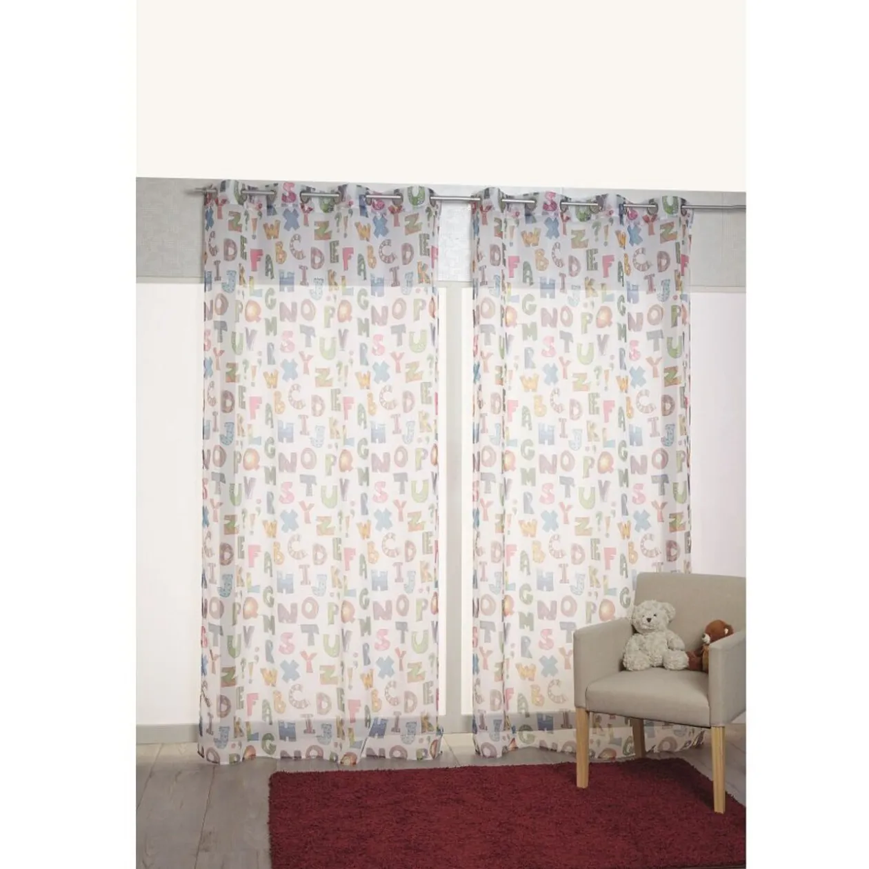 Rideau voilage à oeillets design alphabet, idéal pour chambre d’enfants, dim. 140×240 cm, polyester.