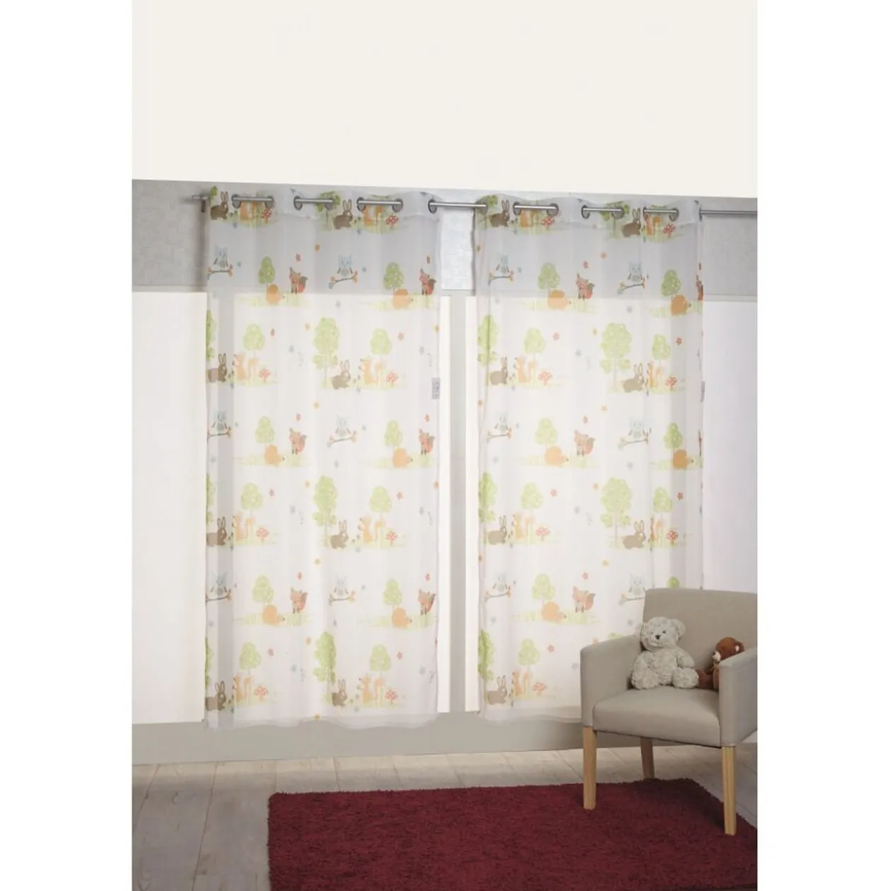 Rideau voilage à oeillets design animaux, idéal pour chambre d’enfants, dim. 140×240 cm, polyester.