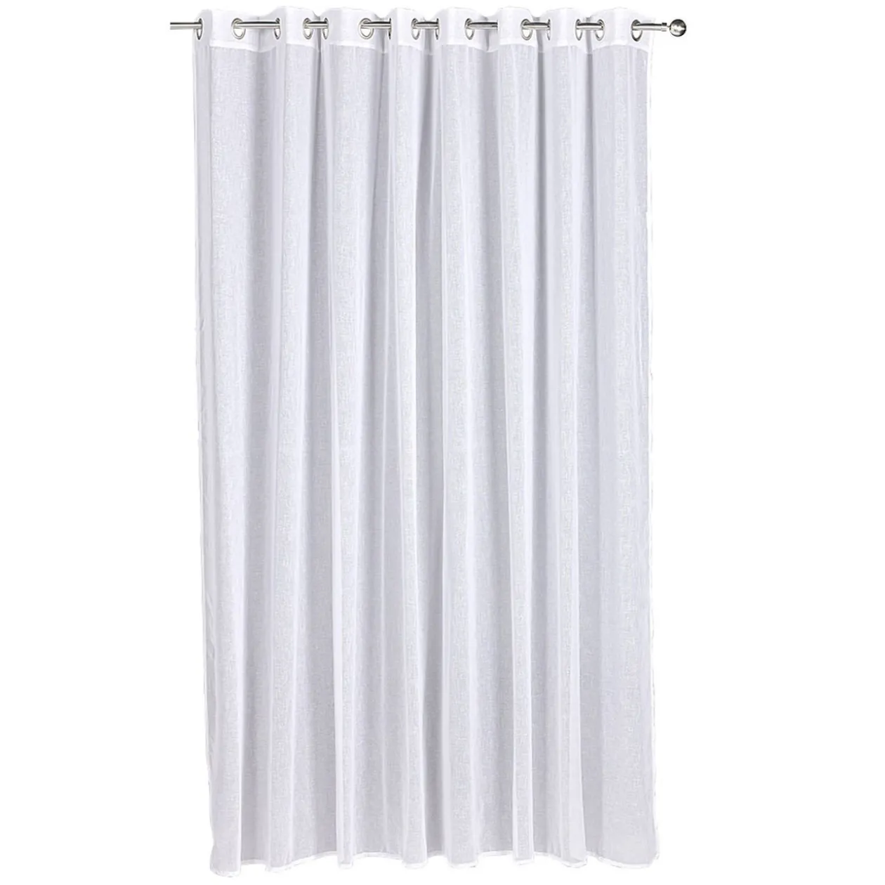 Ce voilage à oeillets aux larges dimensions est idéal pour une grande baie vitrée.
