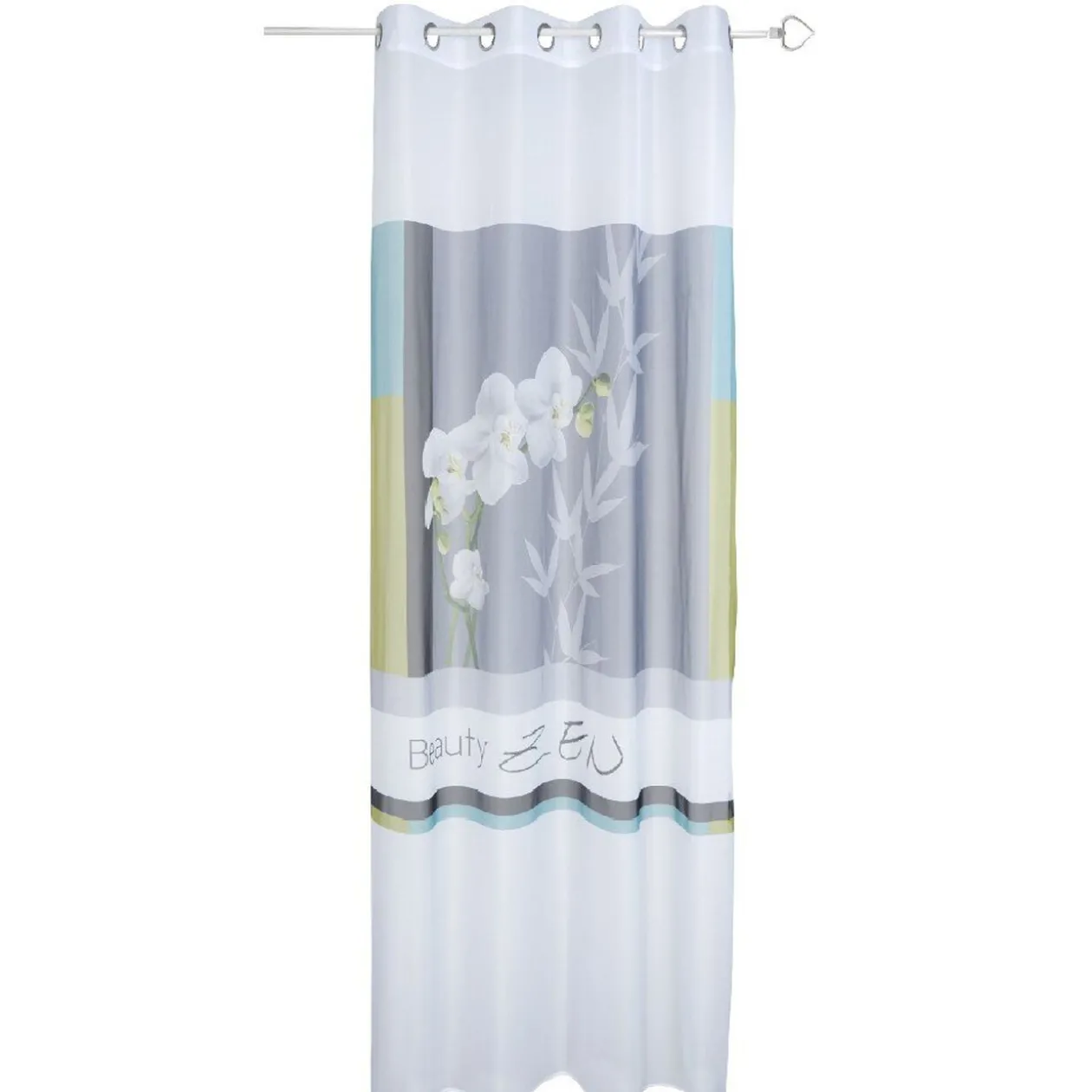 Voilage à oeillets en microfibre fond blanc design Zen, dim. 140×240 cm, 100 % polyester.