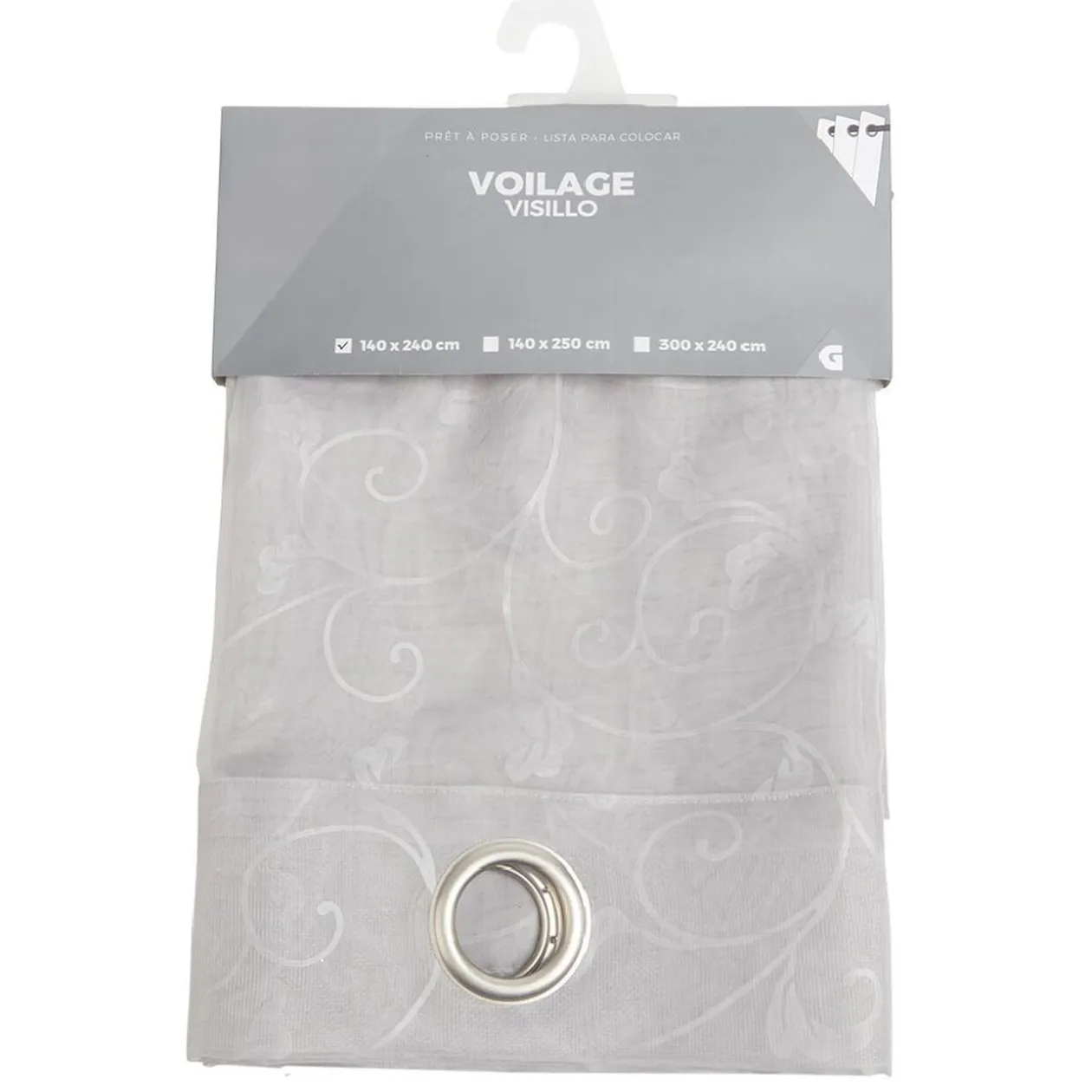 Voilage à oeillets gris clair imprimé arabesque 140×240 cm