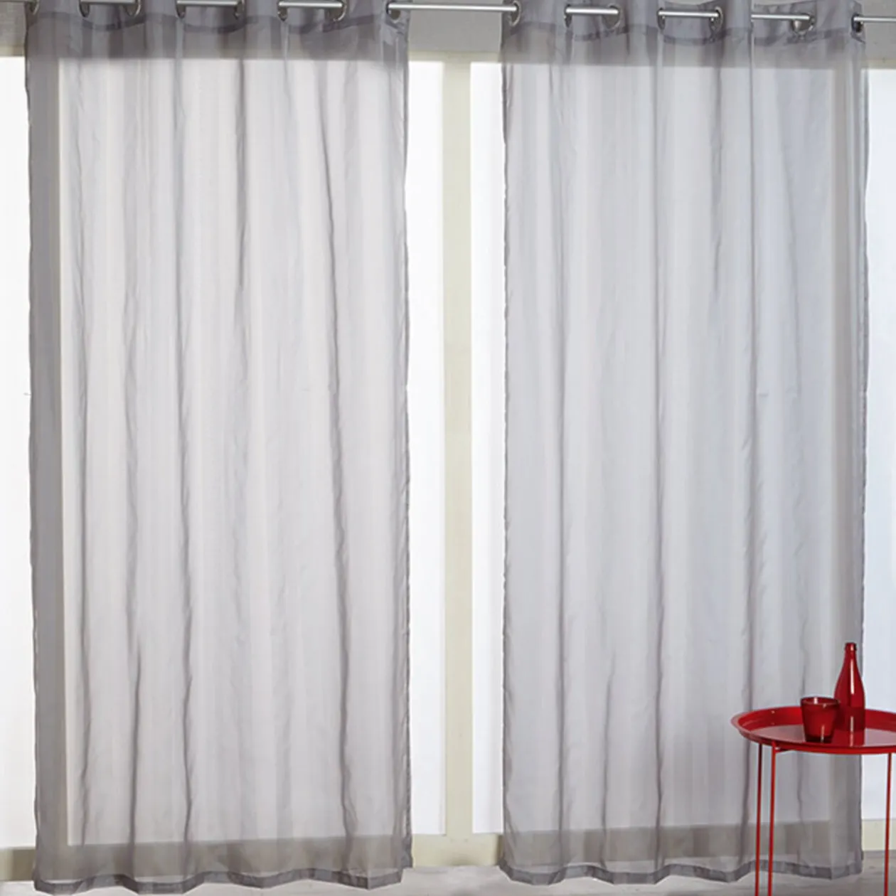 Voilage à oeillets gris design fleurs, dim. 140×240 cm, polyester.
