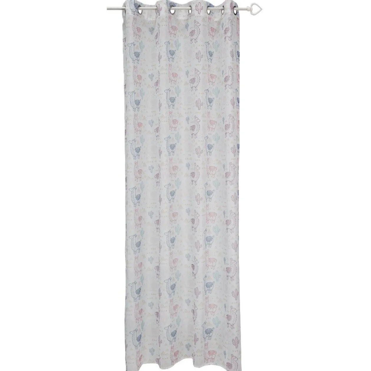 Voilage à oeillets imprimé lama – Ce produit existe en plusieurs coloris aléatoires : rose et vert – Dimensions :L240xl140cm – Matière : 100 % polyester
