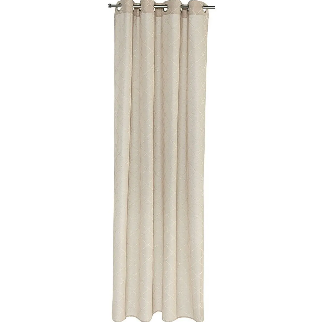 Voilage à oeillets motifs losanges effet décousu couleur taupe.