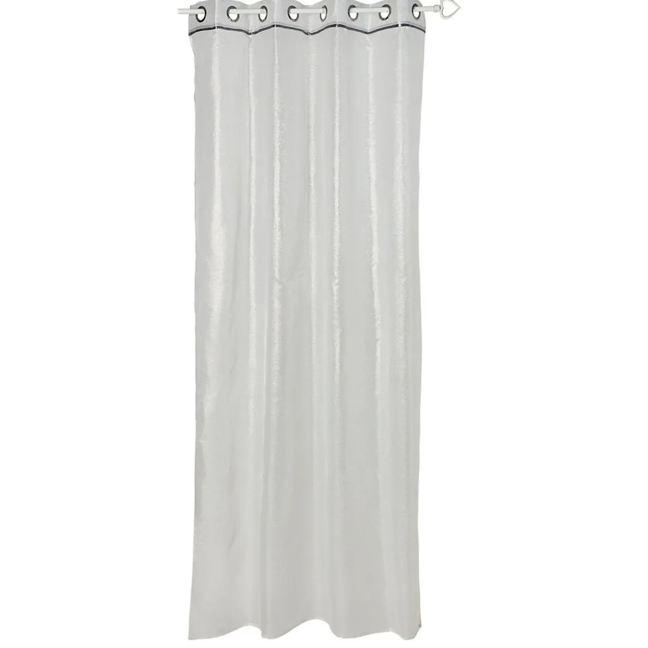 Voilage à oeillets Piping matière brillante avec liseré argenté sur le haut.<br