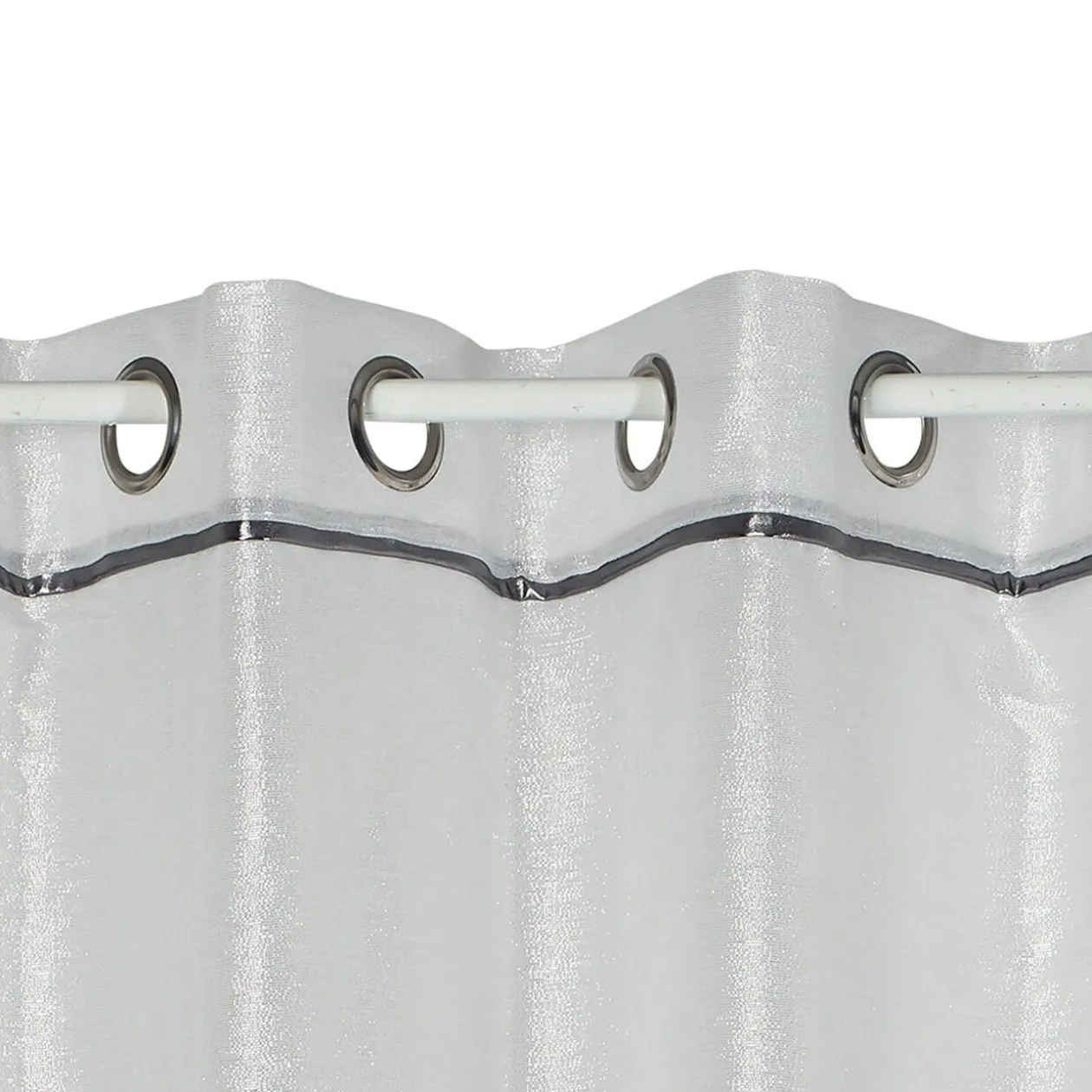 Voilage à oeillets Piping brillant haut liseré argenté