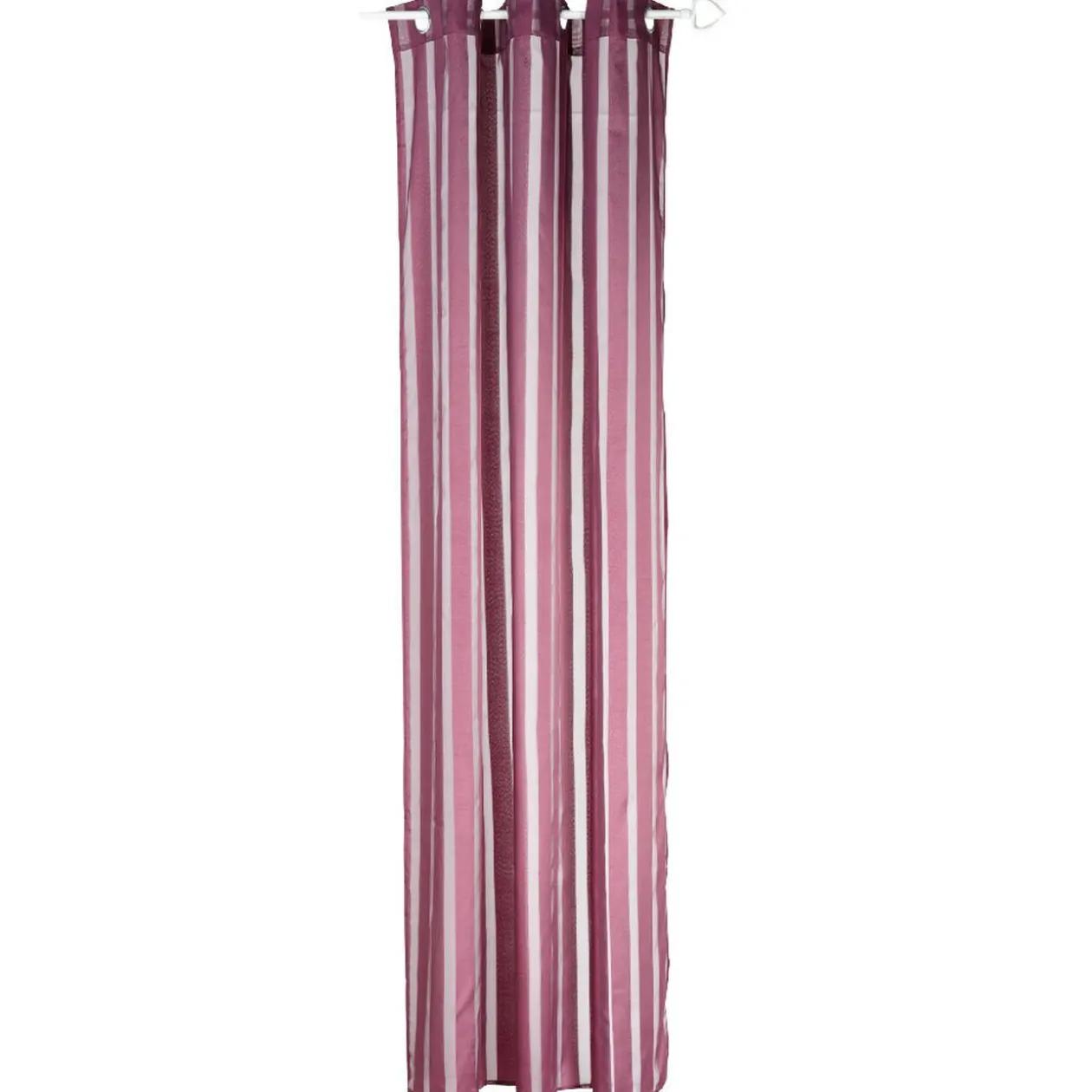 Voilage à oeillets prune et larges rayures verticales, dim. 140×240 cm, polyester.