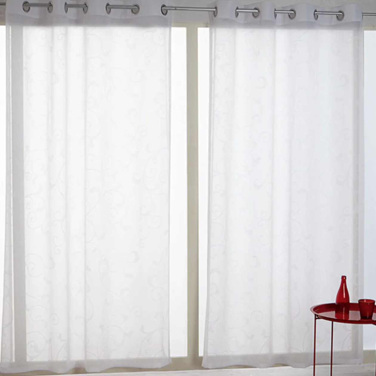 Voilage à oeillets taupe design fleurs, dim. 140×240 cm, polyester.