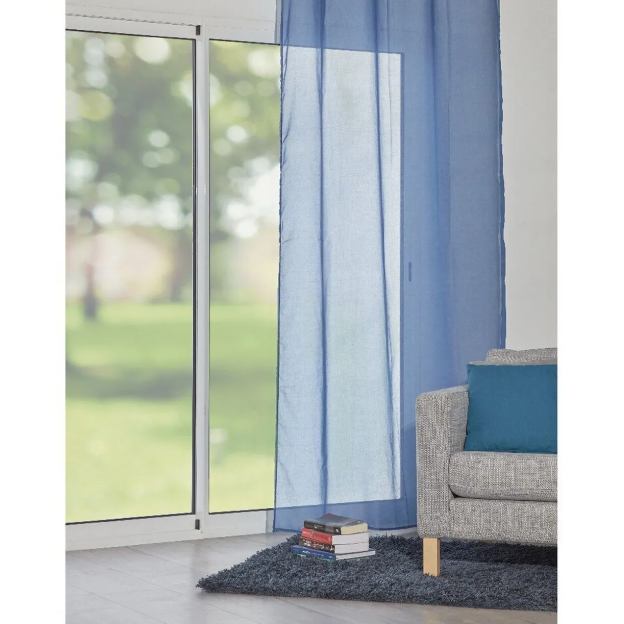 Voilage uni bleu avec 8 oeillets, idéal pour habiller votre baie vitrée entre ciel et mer!