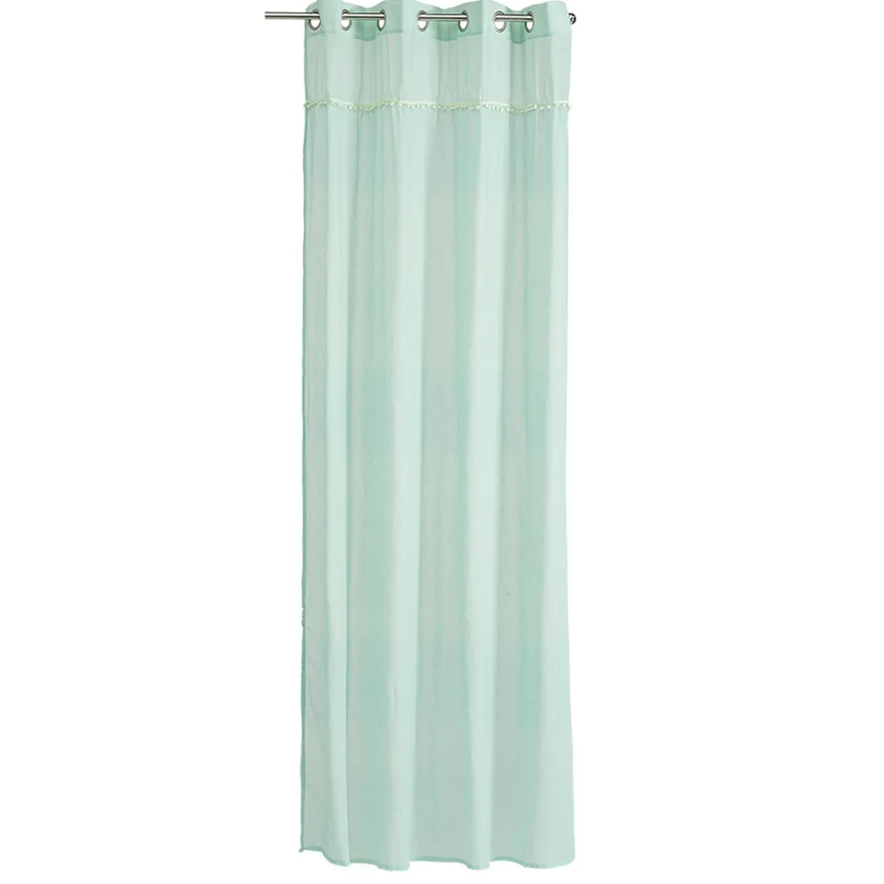 Habillez votre fenêtre à l’aide de ce voilage à 8 oeillets de couleur vert d’eau avec pompons.