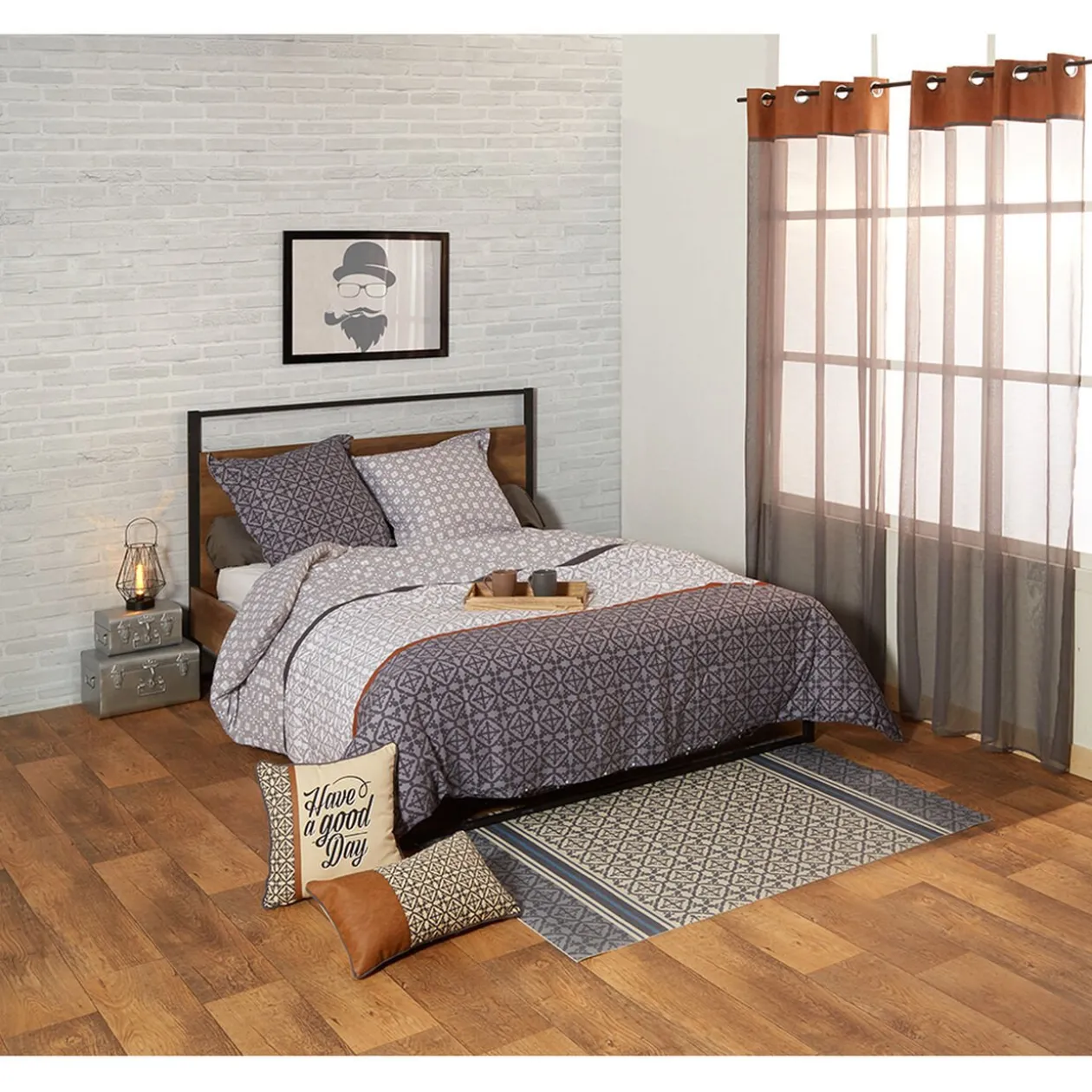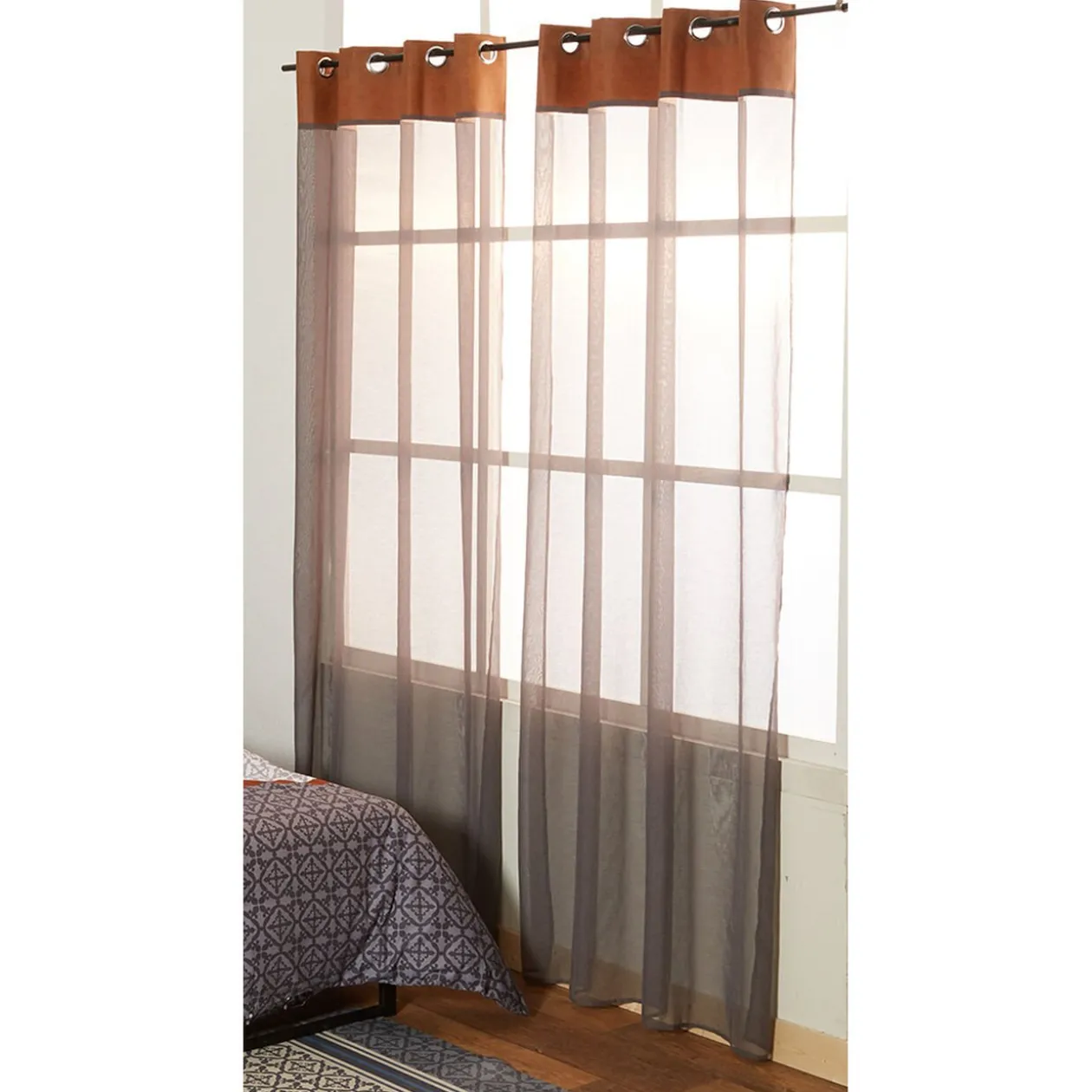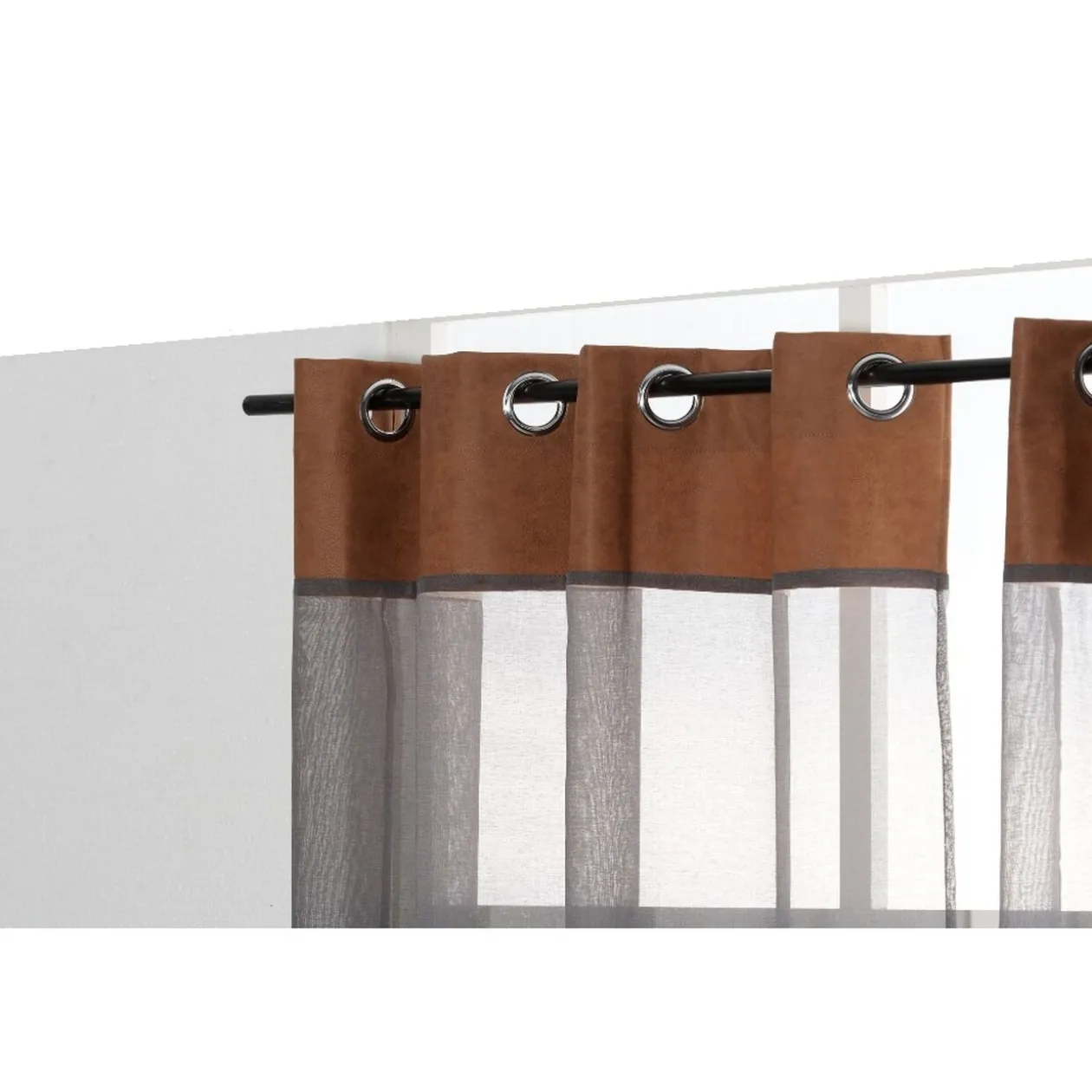 Voilage à oeillets couleur sable imprimés sur tout le haut du rideau. Idéal pour apporter une touche moderne dans votre pièce de vie.