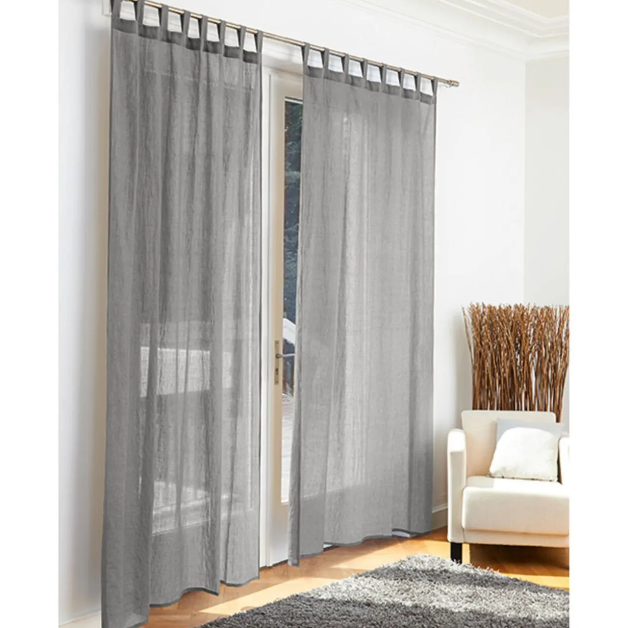 Voilage à pattes gris, dim. 140×240 cm, 20 % coton et 80 % polyester.