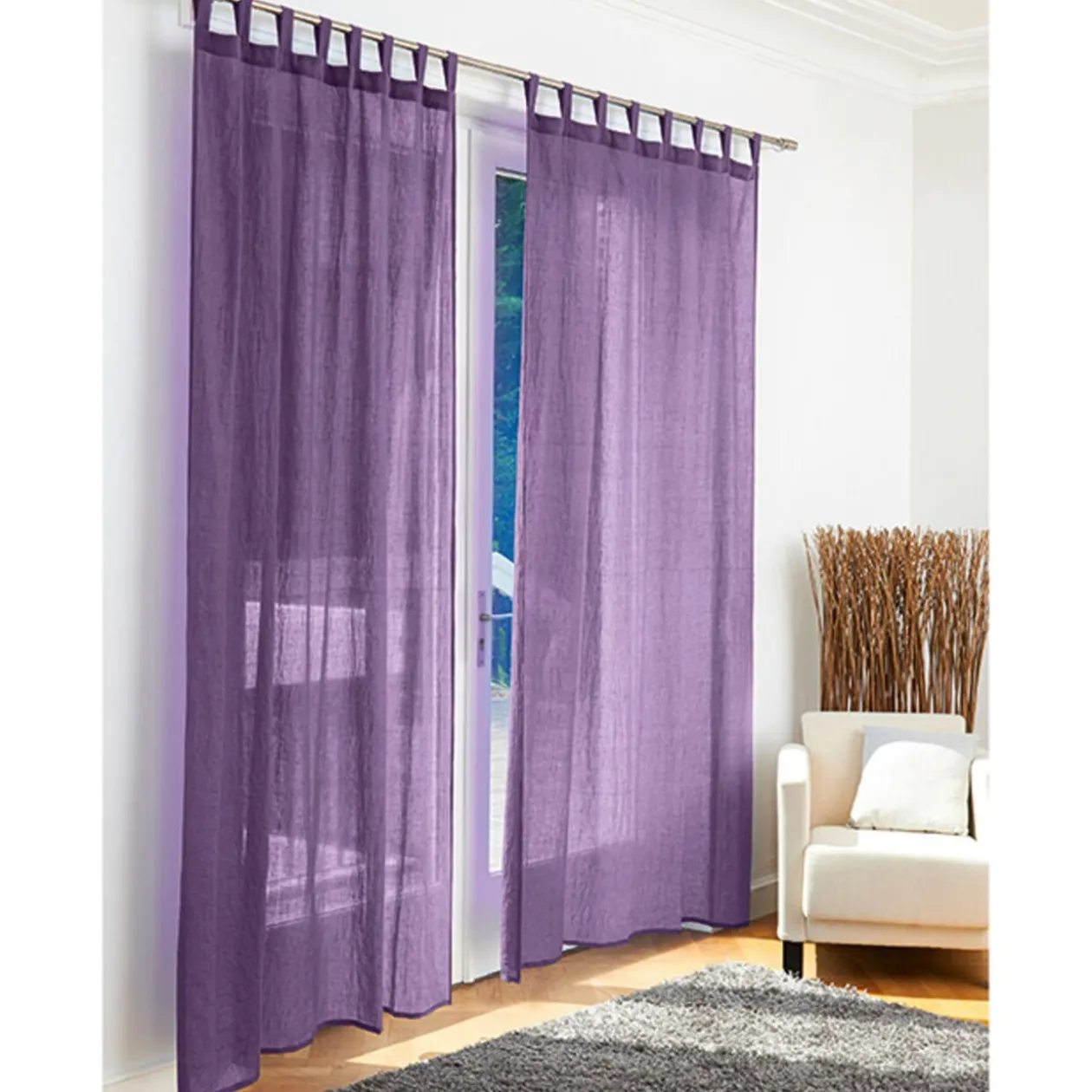 Voilage à pattes violet, dim. 140×240 cm, 20 % coton et 80 % polyester.