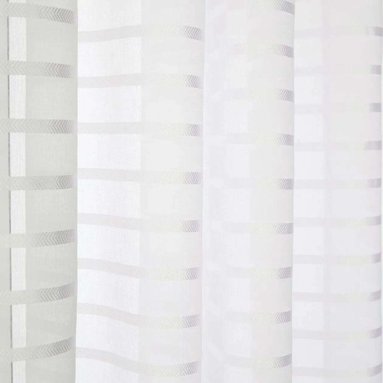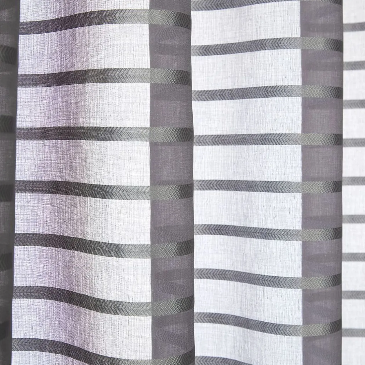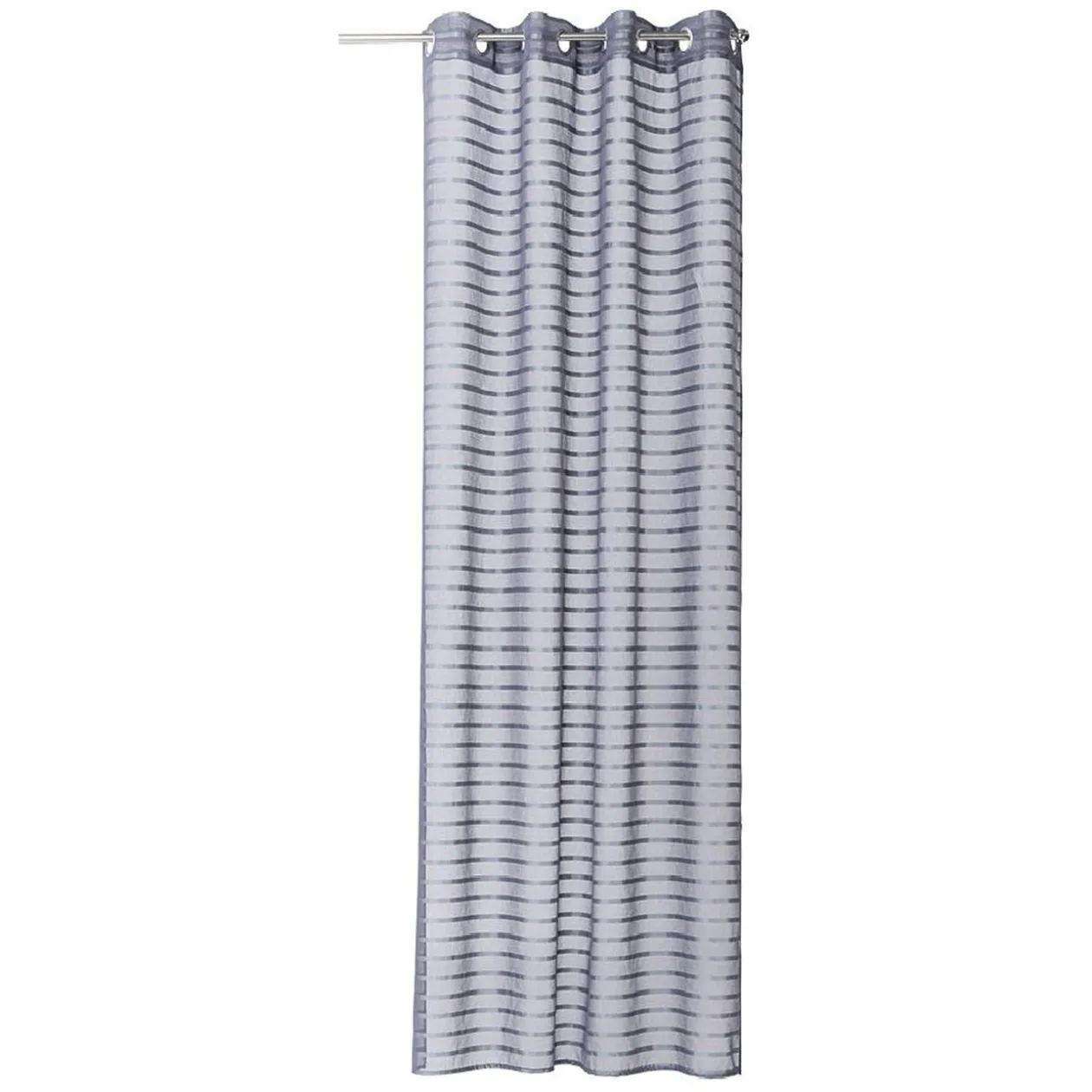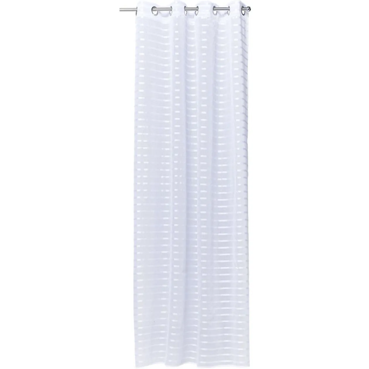 Voilage à oeillets métalliques avec rayures horizontales effet brillant.