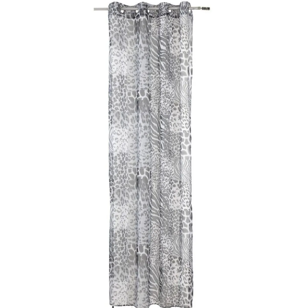 Voilage rideau à oeillets inspiration chambre savane, dim. 140×240 cm, polyester.