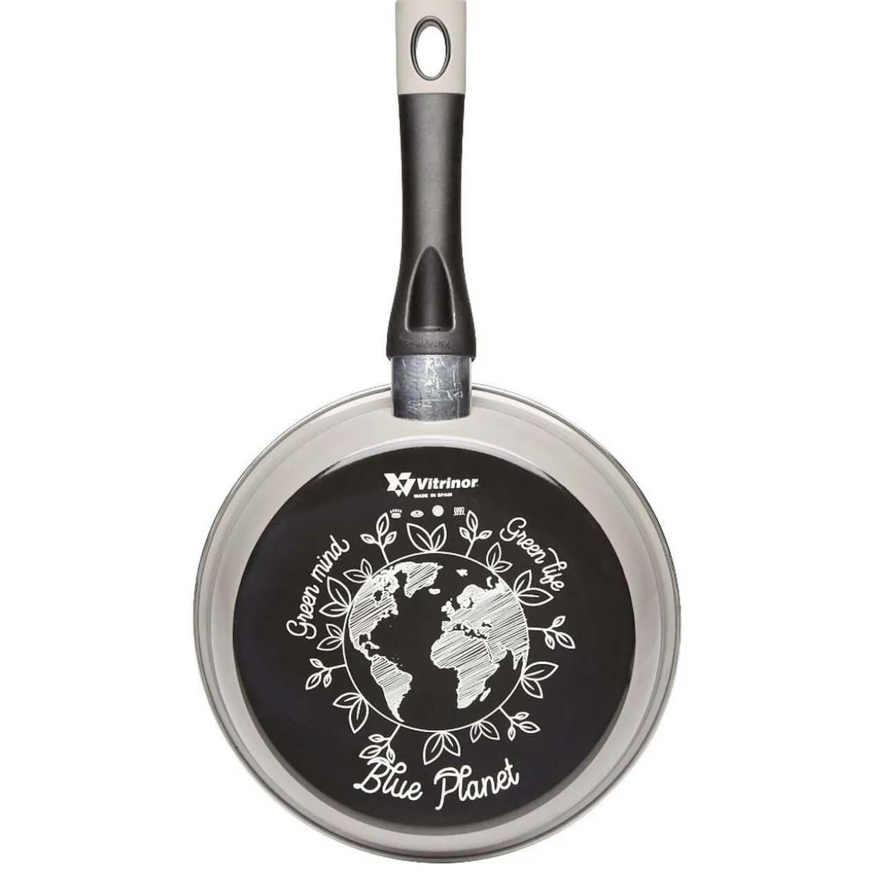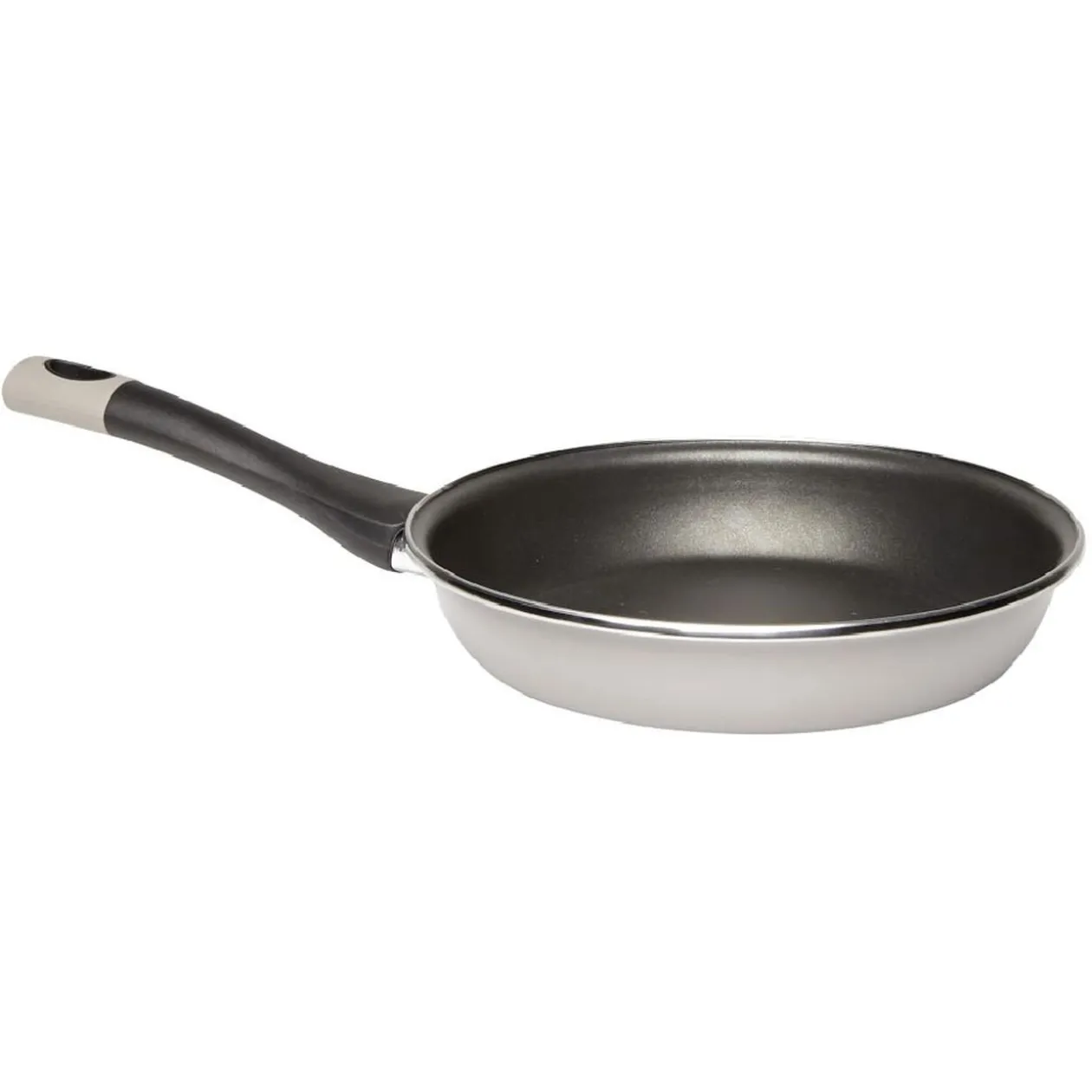 Lot de 2 poêles en acier émaillé beige à l’extérieur.
