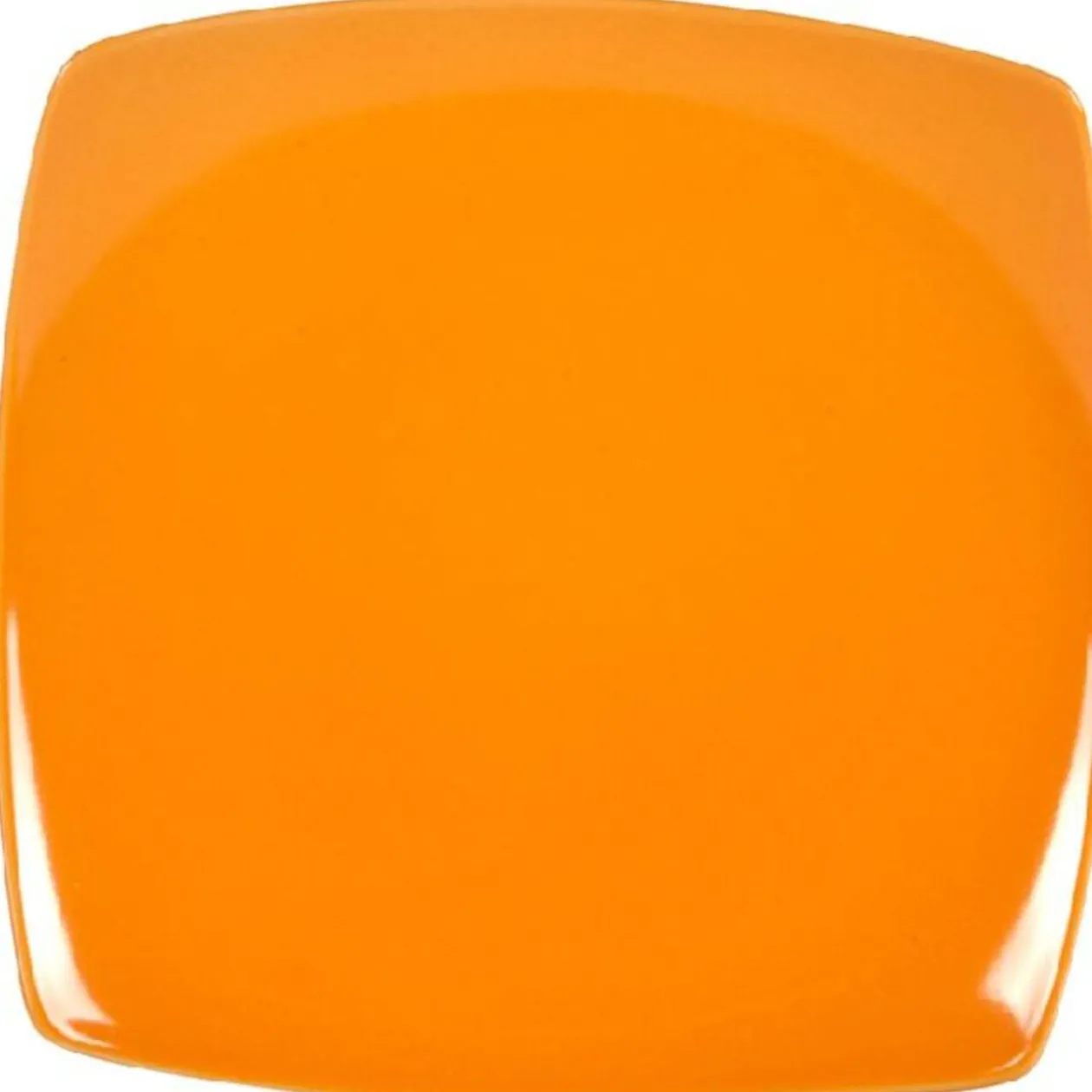 Assiette à dessert carrée en grès de dimension 19,5 x 19,5 cm et de couleur orange.