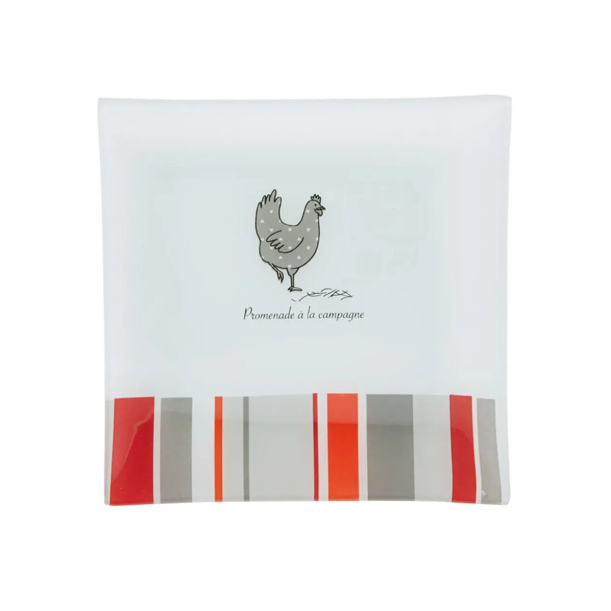 Assiette à dessert carrée design poule.