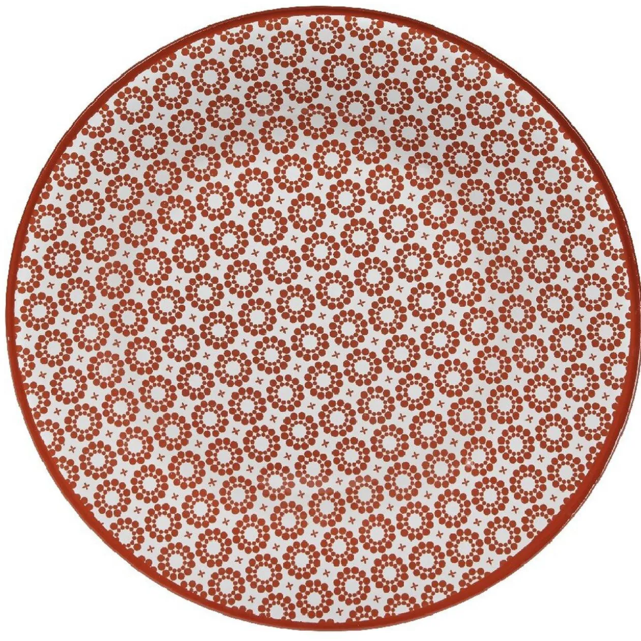 4 assiettes à dessert Micro de couleur blanc, motifs pois en forme de fleurs rouges.
