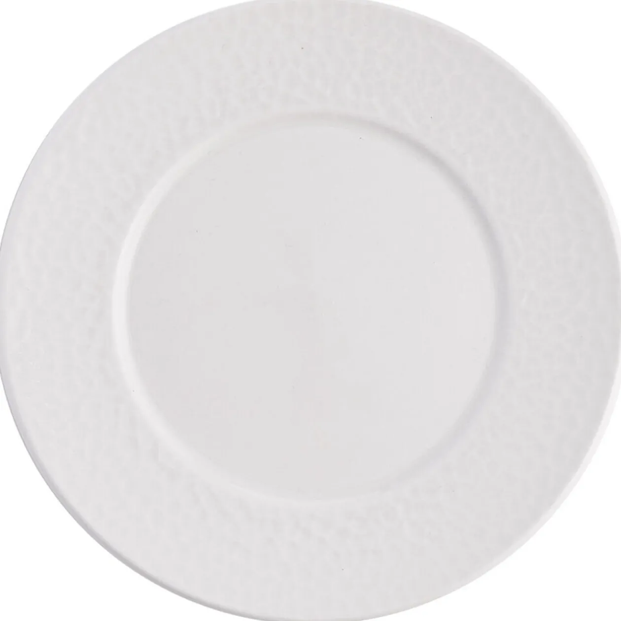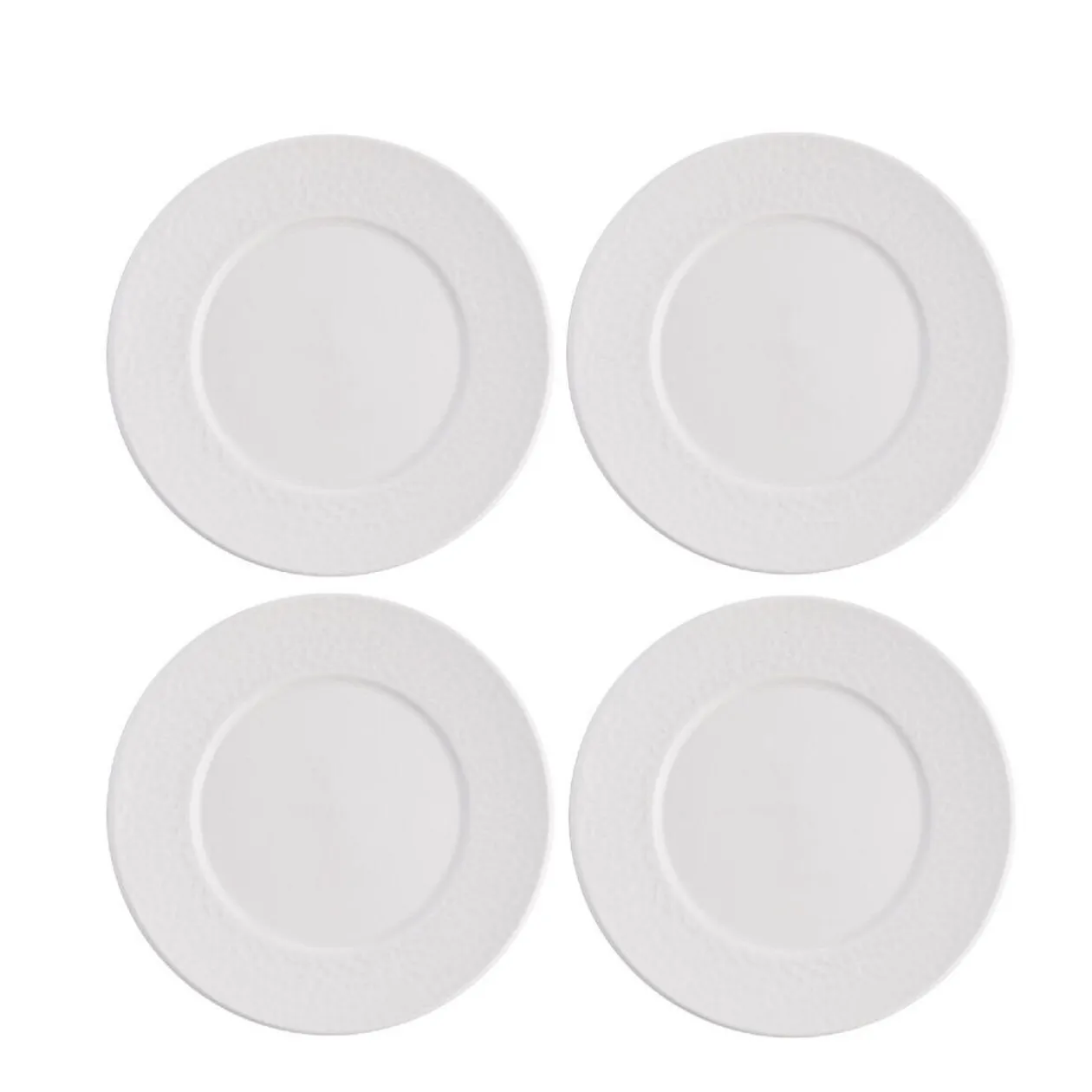 Lot de 4 assiettes à dessert en porcelaine rondes embossées de couleur blanche unie.
