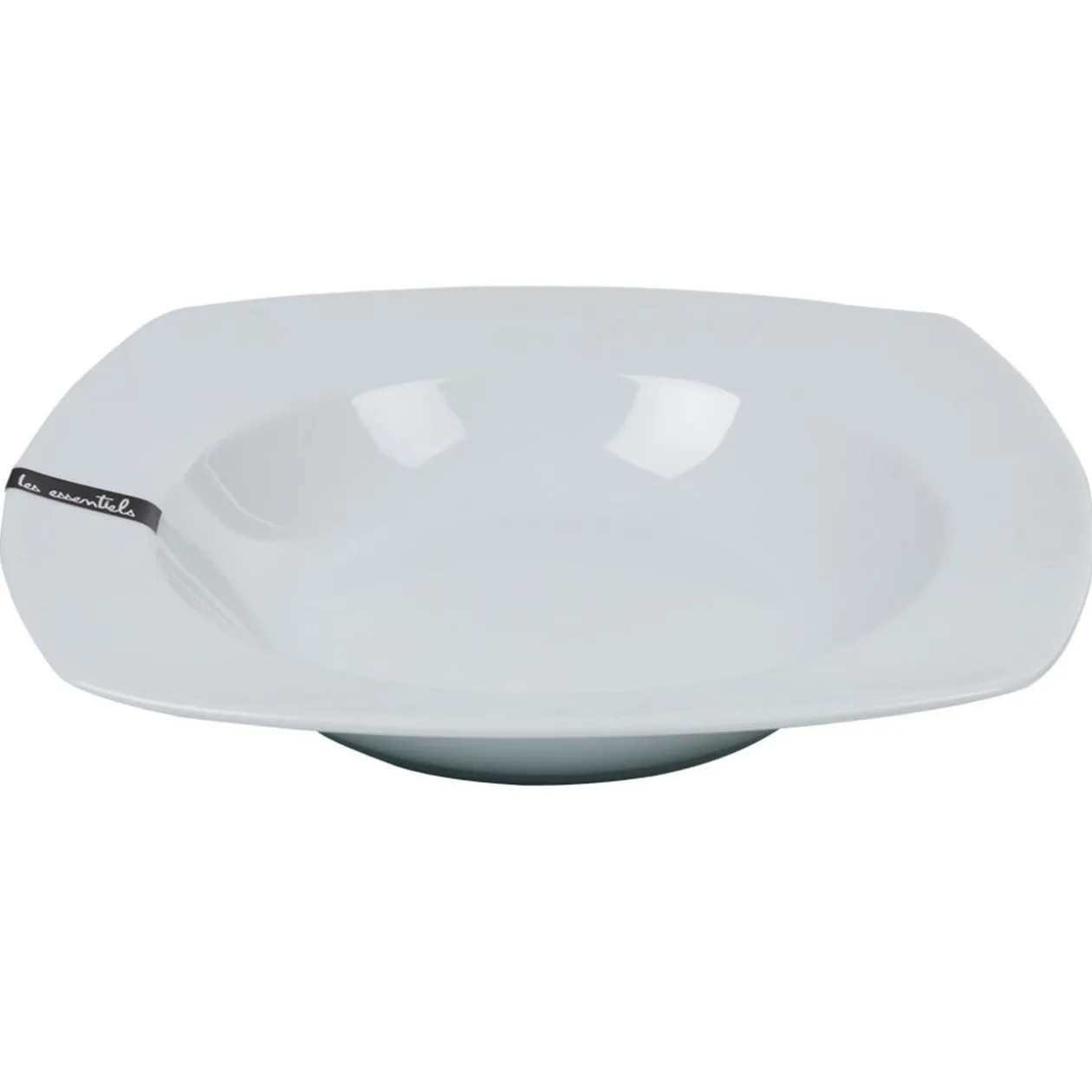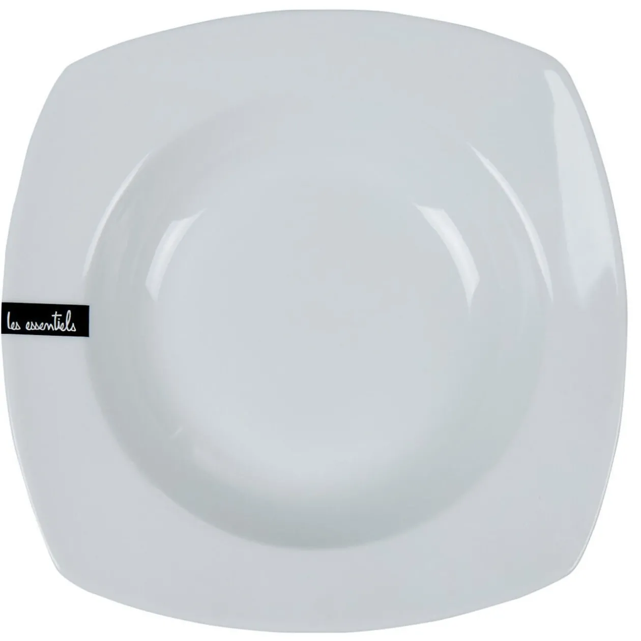 Assiette creuse carrée blanche en porcelaine « Les essentiels », dim. 23x23xh.4 cm.