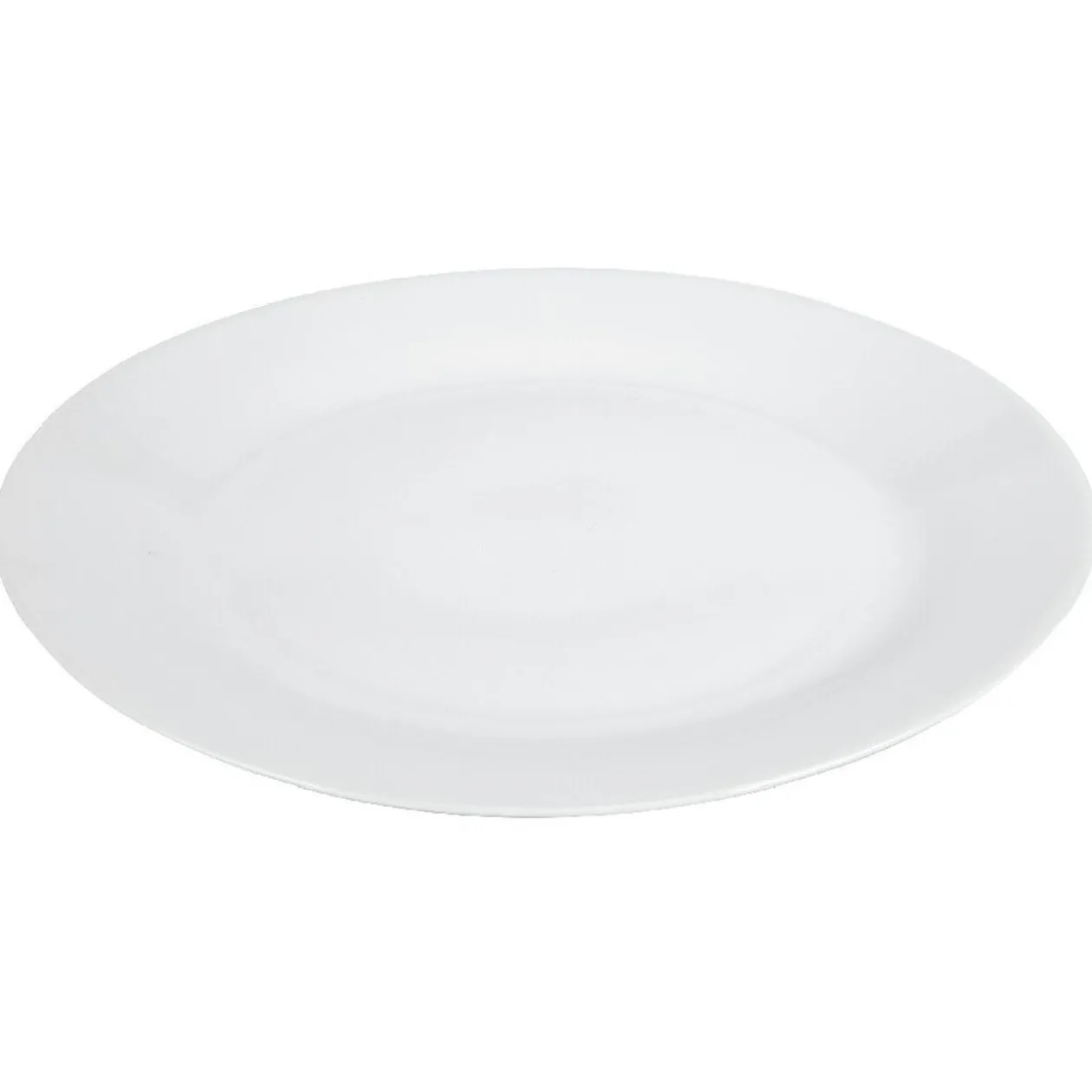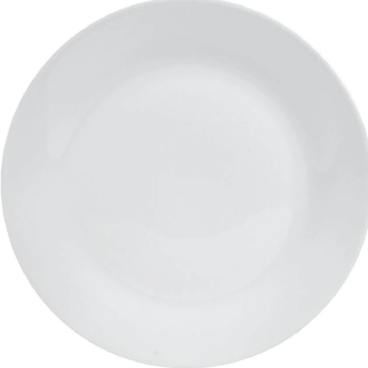 Assiette plate ronde en porcelaine, de couleur blanche.