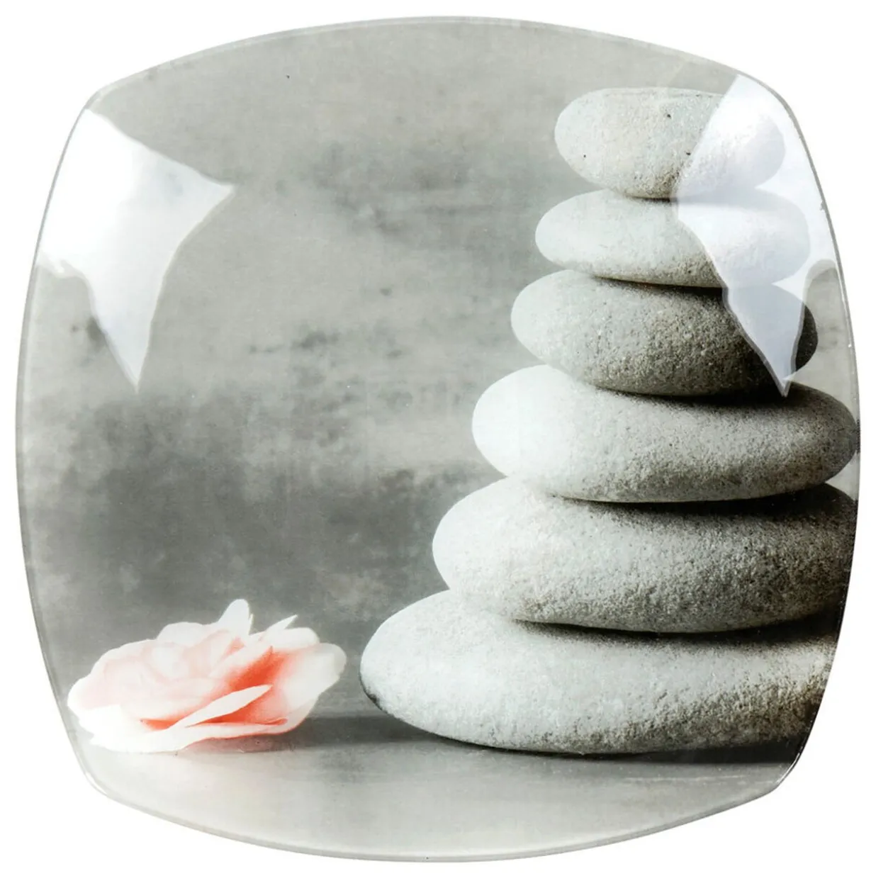 Assiette plate carrée légèrement arrondie design galets gris zen.