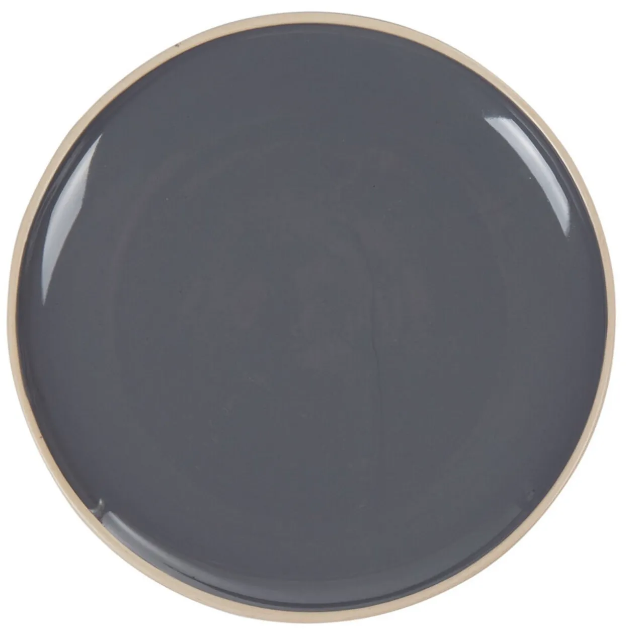 Assiette plate en faïence de forme ronde, couleur grise.