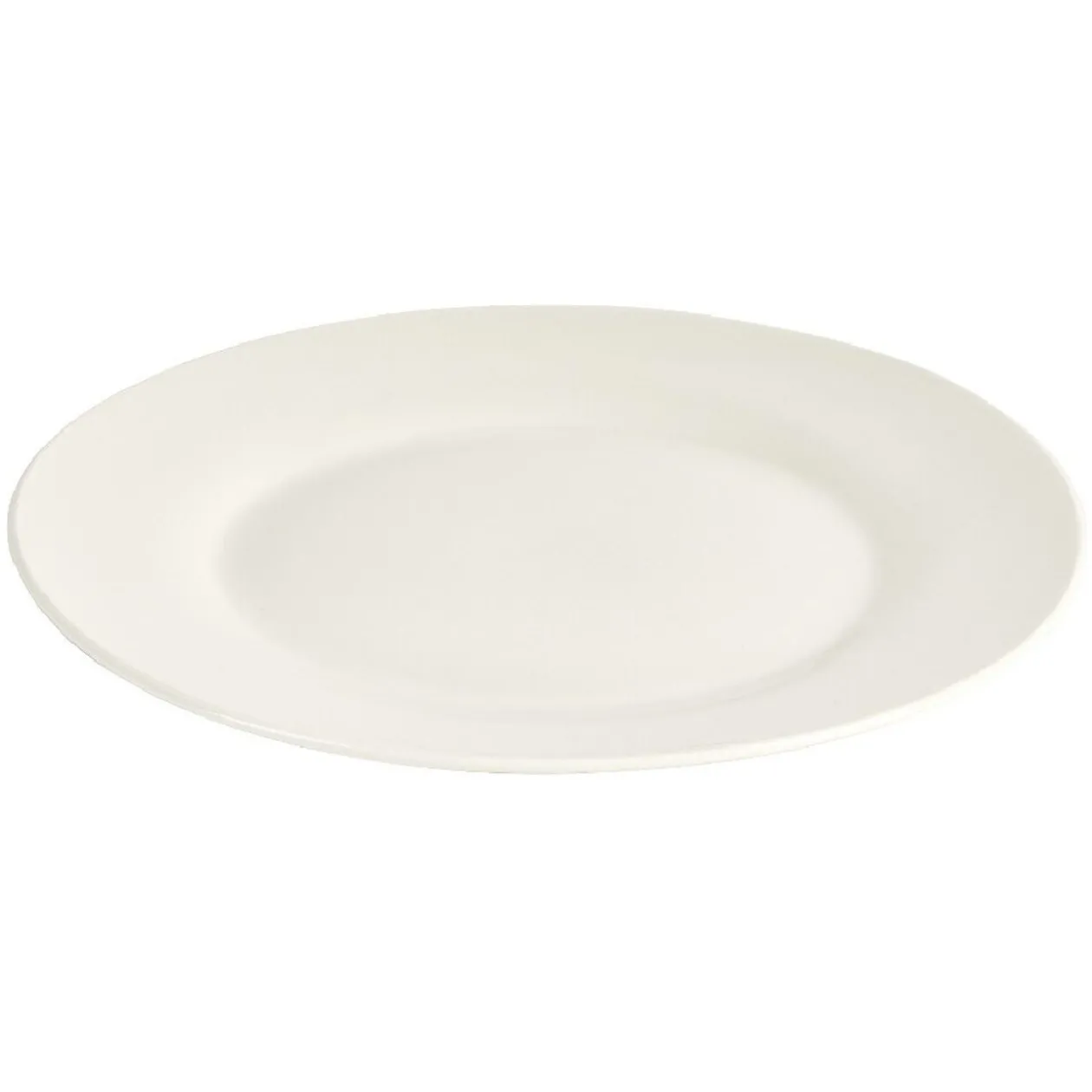 Assiette plate en porcelaine, de couleur blanche et de forme ronde.