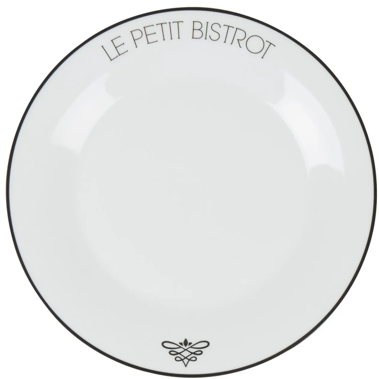 Assiette plate blanche et noire « Le petit bistrot », dim. Ø27xh.2,5 cm, porcelaine.