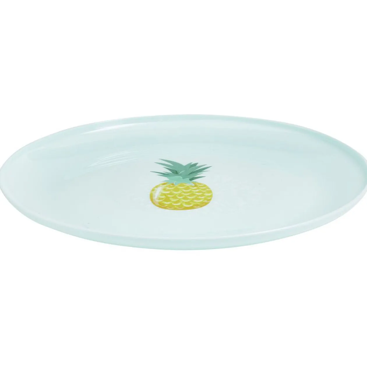 Assiette ronde en plastique décorée d’un motif ananas.