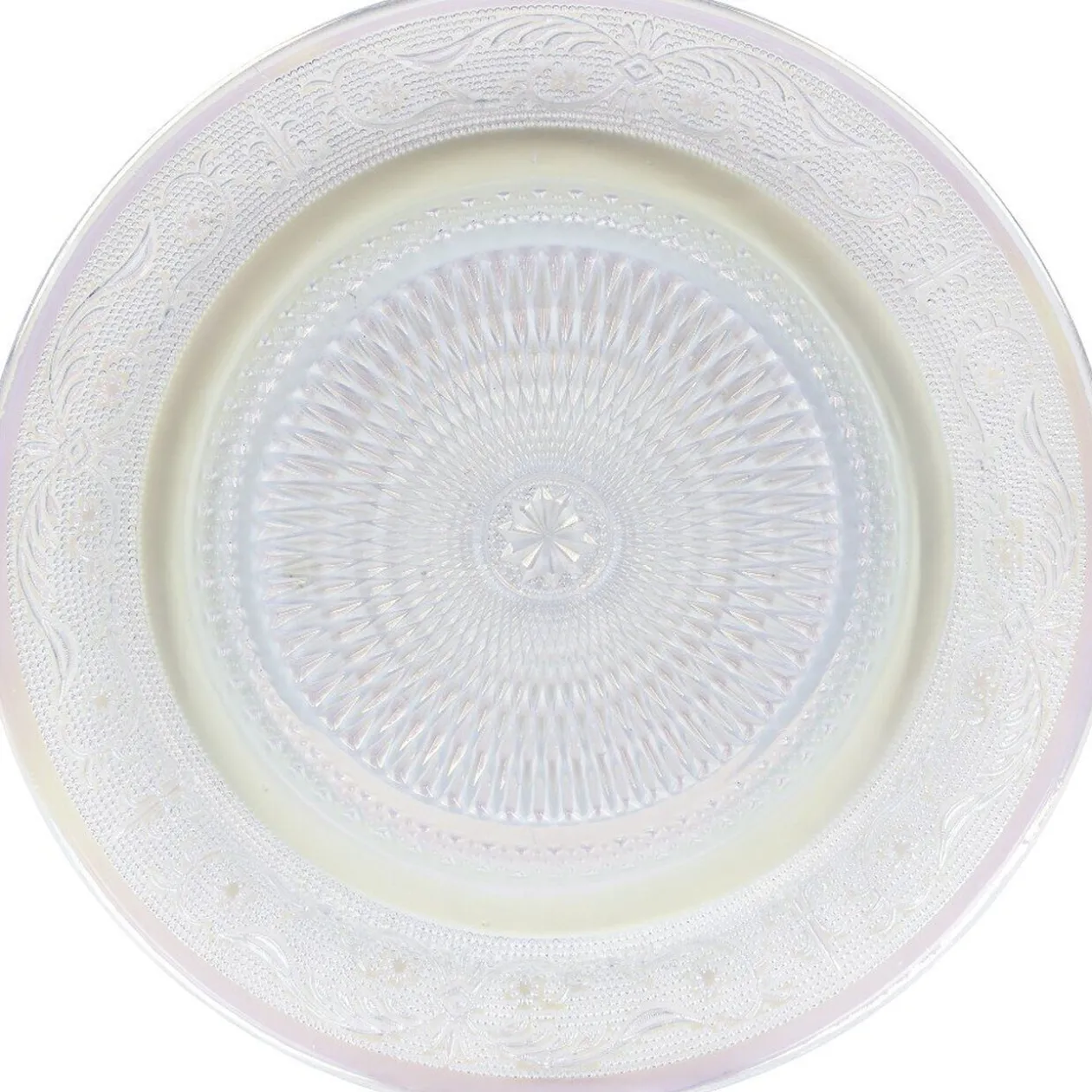 Assiette plate de forme ronde avec décor ciselé design irisé.