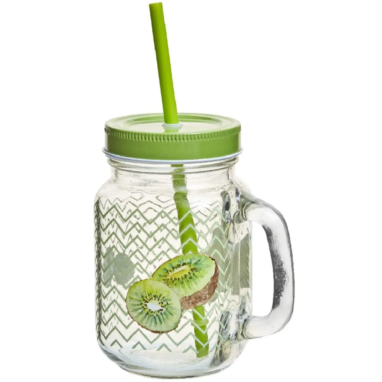 Modèle kiwi avec décor chevrons, couvercle et paille vert clair.