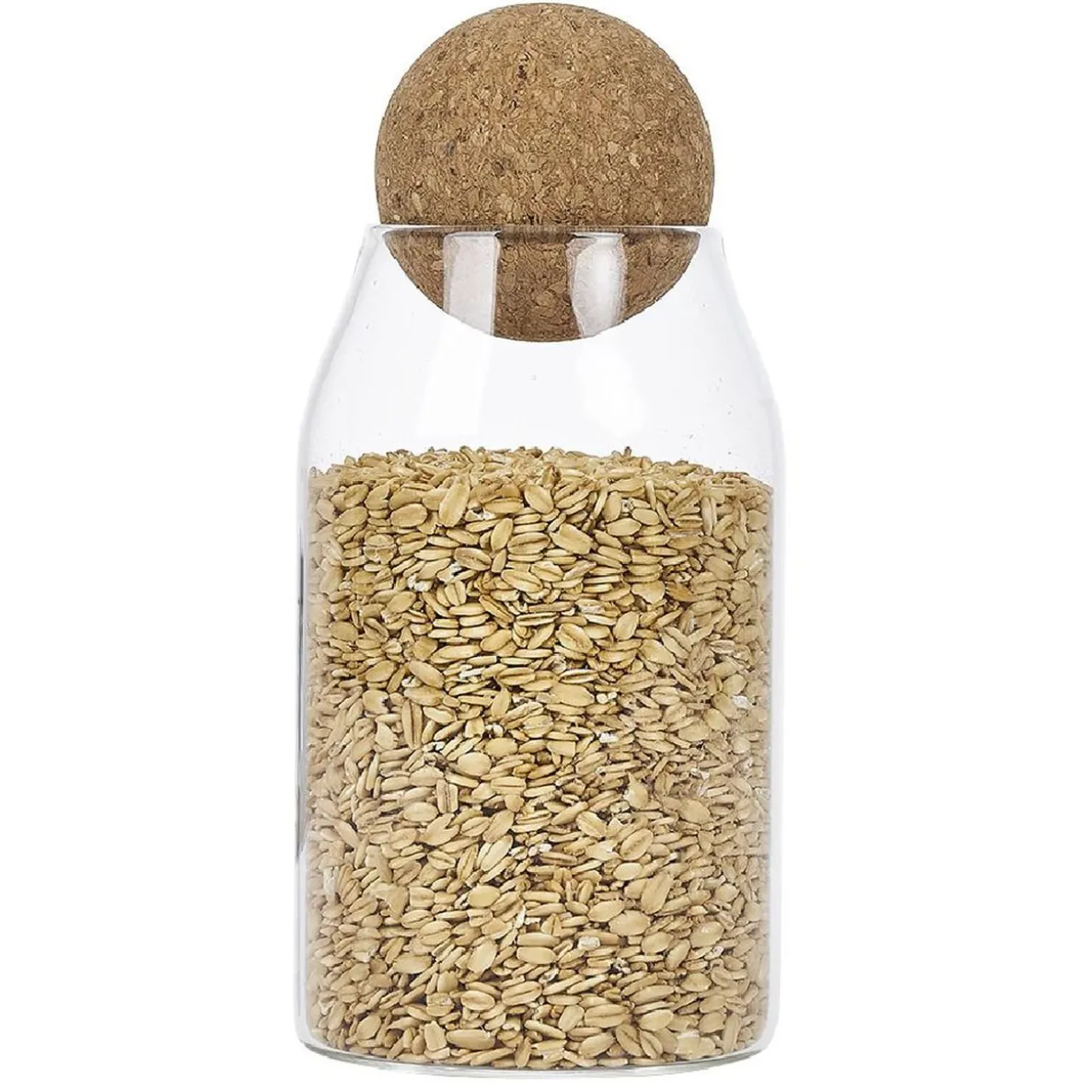 Bocal de conservation en verre transparent avec couvercle en liège. Décoratif, ce bocal, d’une capacité de 0,70L, sera parfait pour garder vos aliments en vrac au sec tout en préservant leurs saveurs et fraîcheurs !