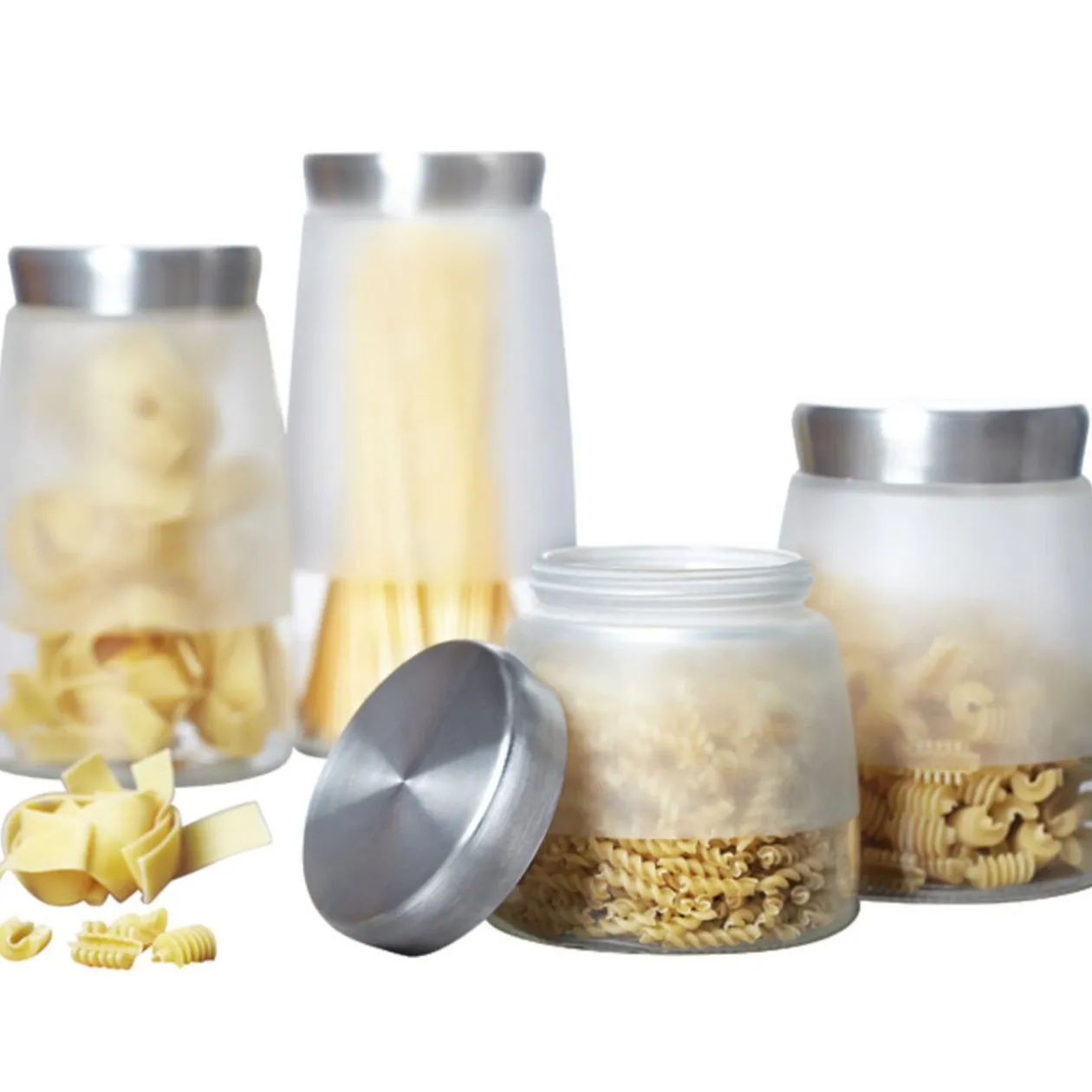 Lot de 4 bocaux en verre, couvercle inox, cont. 98, 135, 180 et 220 cl.