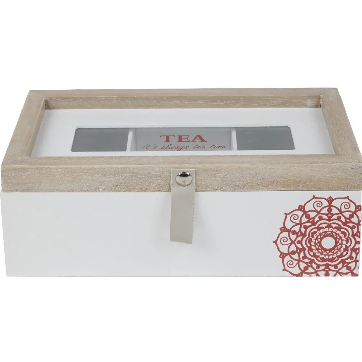 Rangez vos thés et infusions dans cette boîte au décor raffinée en mdf blanc naturel et motif rosace.