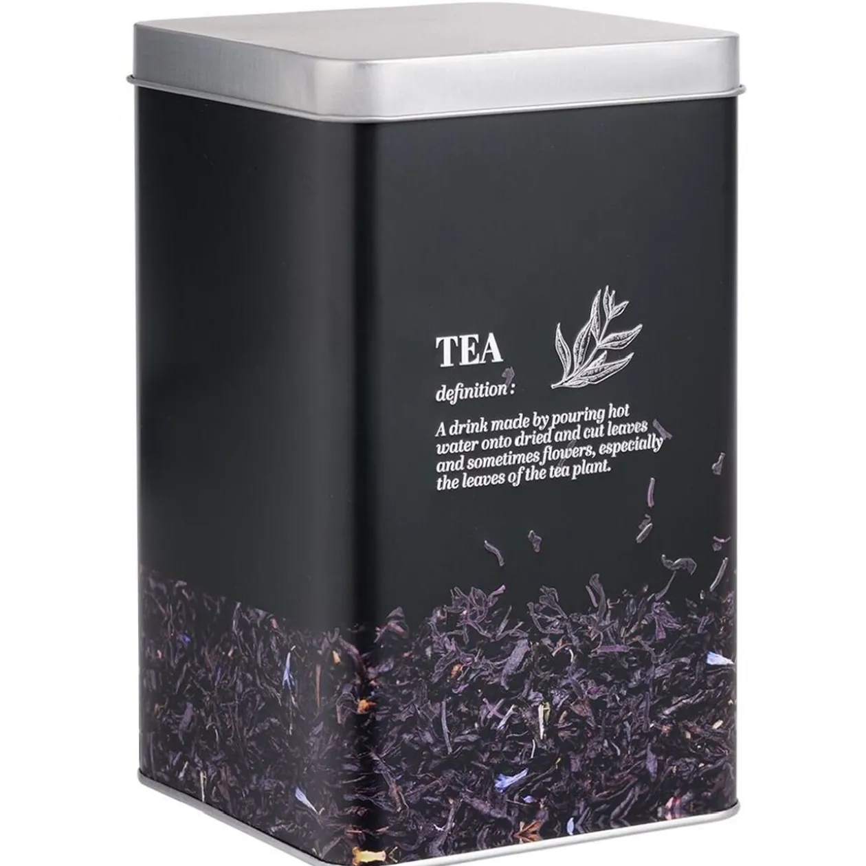 Conservez votre thé préféré dans cette jolie boîte en métal avec inscription et motif déco sur fond noir. Pratique et décorative, elle fera une présentation originale sur vos étagères ou le plan de travail de la cuisine.