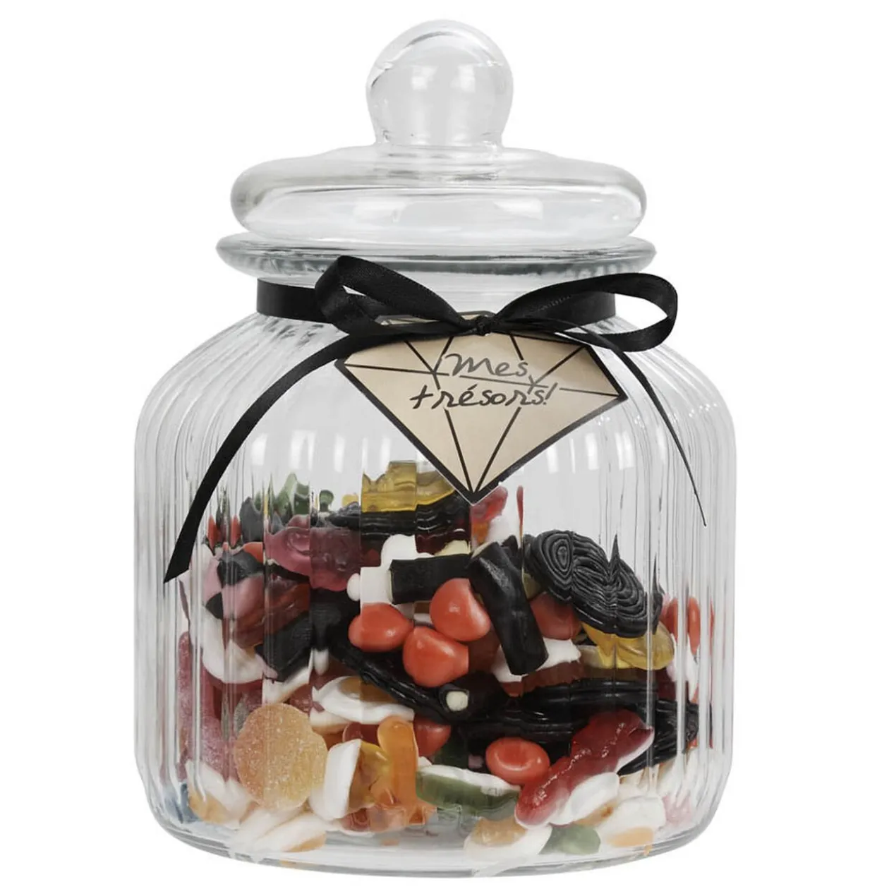 Bonbonnière transparente avec couvercle. Idéale pour stocker vos bonbons, fruits secs et autres condiments.