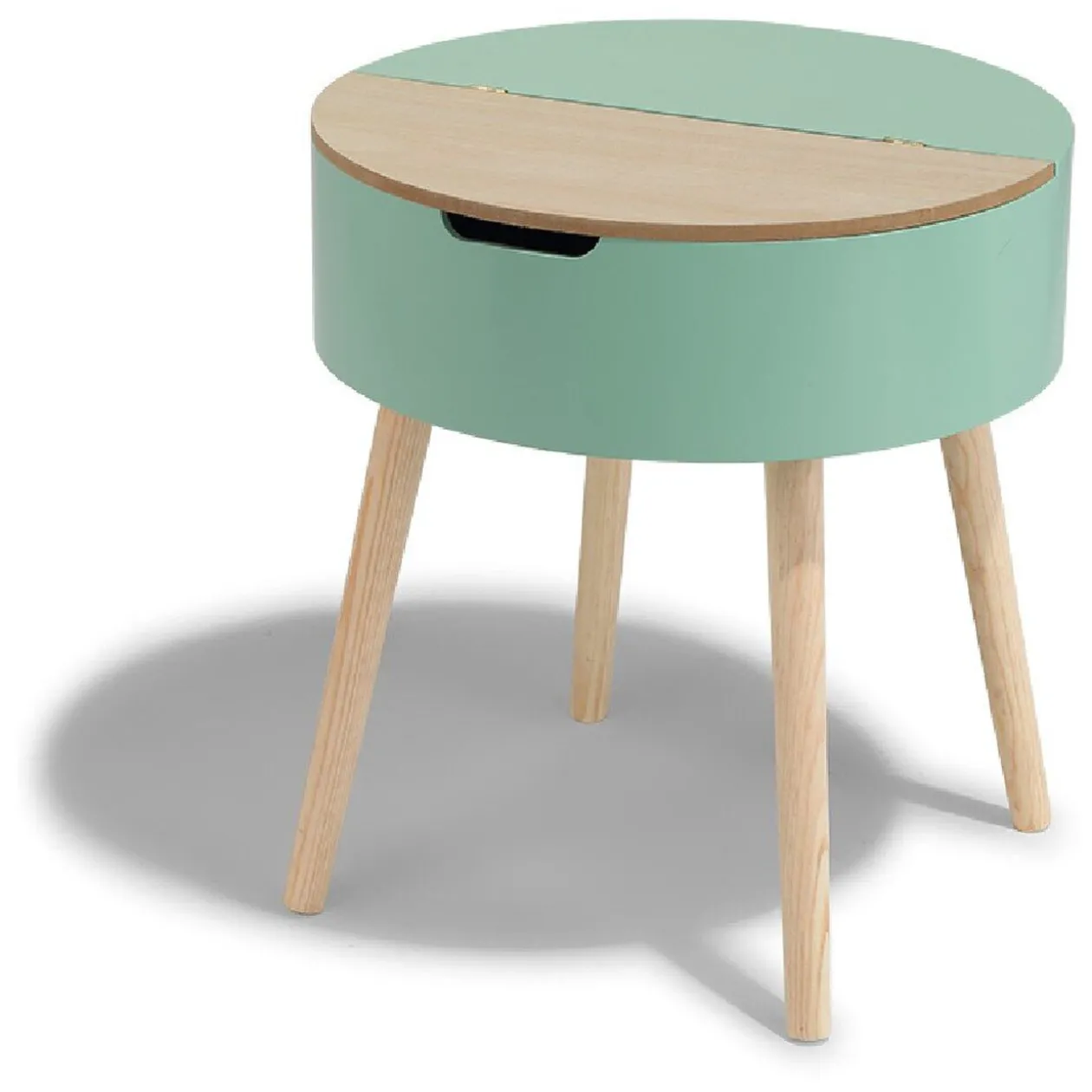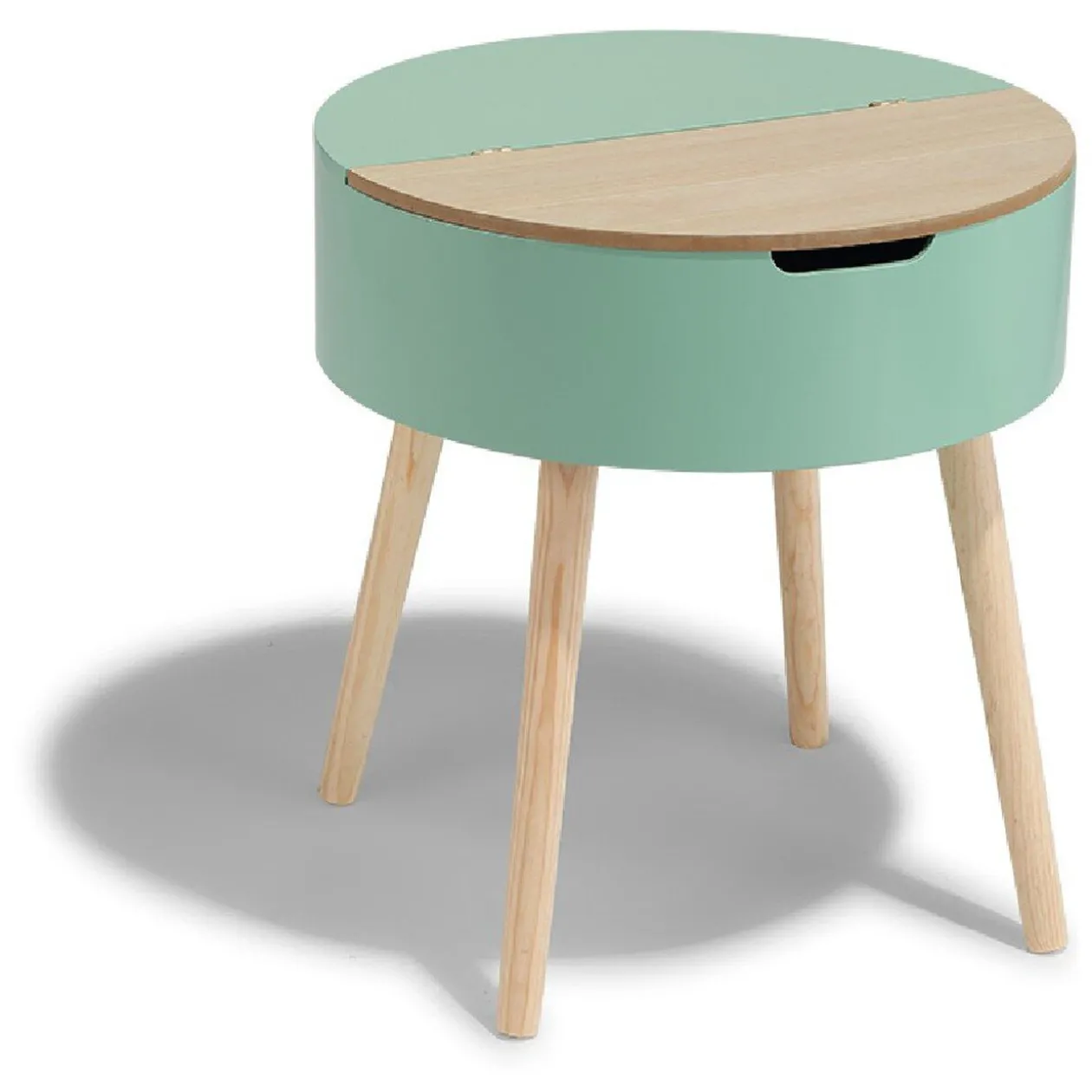Grâce à sa fonction coffre, le bout de canapé Elton sait se montrer astucieux ! Vous serez également conquis par son look scandinave et sa couleur vert d’eau qui apportera du peps à votre salon.