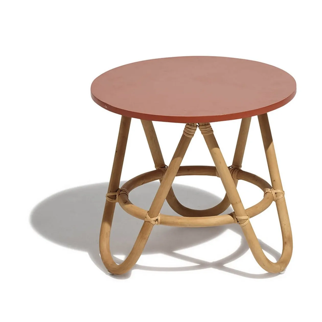 – Matières : structure en rotin, plateau en MDF (panneau de fibres de bois) finition vernis nitrocellulose