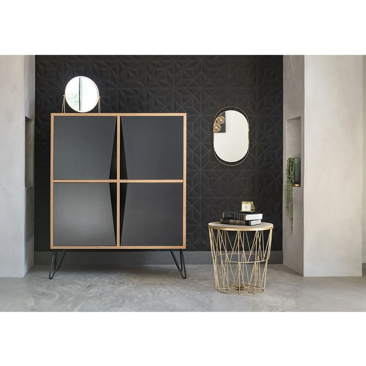 Découvrez notre charmant bout de canapé laiton Gaëlle. Avec sa structure à inspiration géométrique en métal et son plateau en MDF (panneau de fibres de bois, il est un modèle de modernité et joue avec le mélange des matières. Il donnera sans soucis un effet de légèreté et d’espace ouvert à votre intérieur. De plus, il se mariera aisément à vos meubles, peu importe la pièce dans laquelle vous l’installer. En effet, il peut également servir de table de chevet, par exemple. Vous aurez alors l’occasion de poser vos affaires à portée de main : vos lunettes, un livre, une lampe, etc. Et laissez libre cours à votre imagination en choisissant des objets de décoration qui vous reflètent comme des plantes ou des bougies. Mais ce n’est pas tout, grâce à son plateau amovible, il est possible de ranger bien plus de choses dans son coffre. Plaids, coussins, couvertures et magazines trouveront astucieusement un endroit où se loger. Sur notre catalogue, vous pourrez consulter le reste de la gamme Gaëlle et ainsi vous créer un mobilier coordonné.