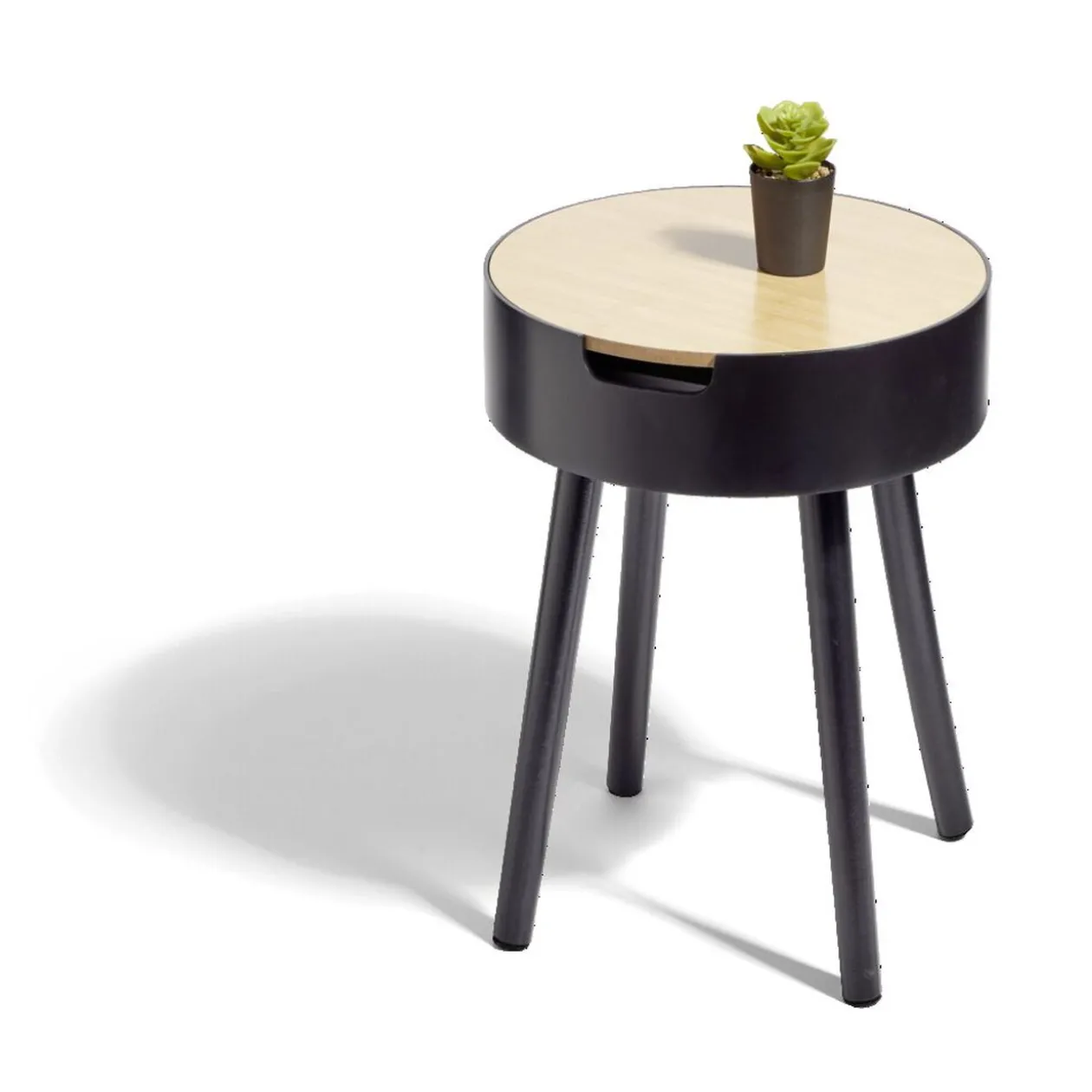 Ce bout de canapé Mathieu incarne l’élégance contemporaine avec son design en bois naturel et noir.