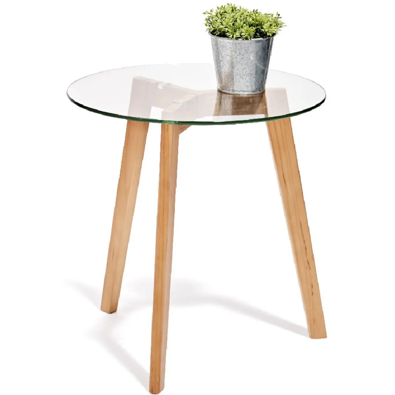 – Matières : plateau en verre trempé de 6mm et pieds en hêtre vernis
